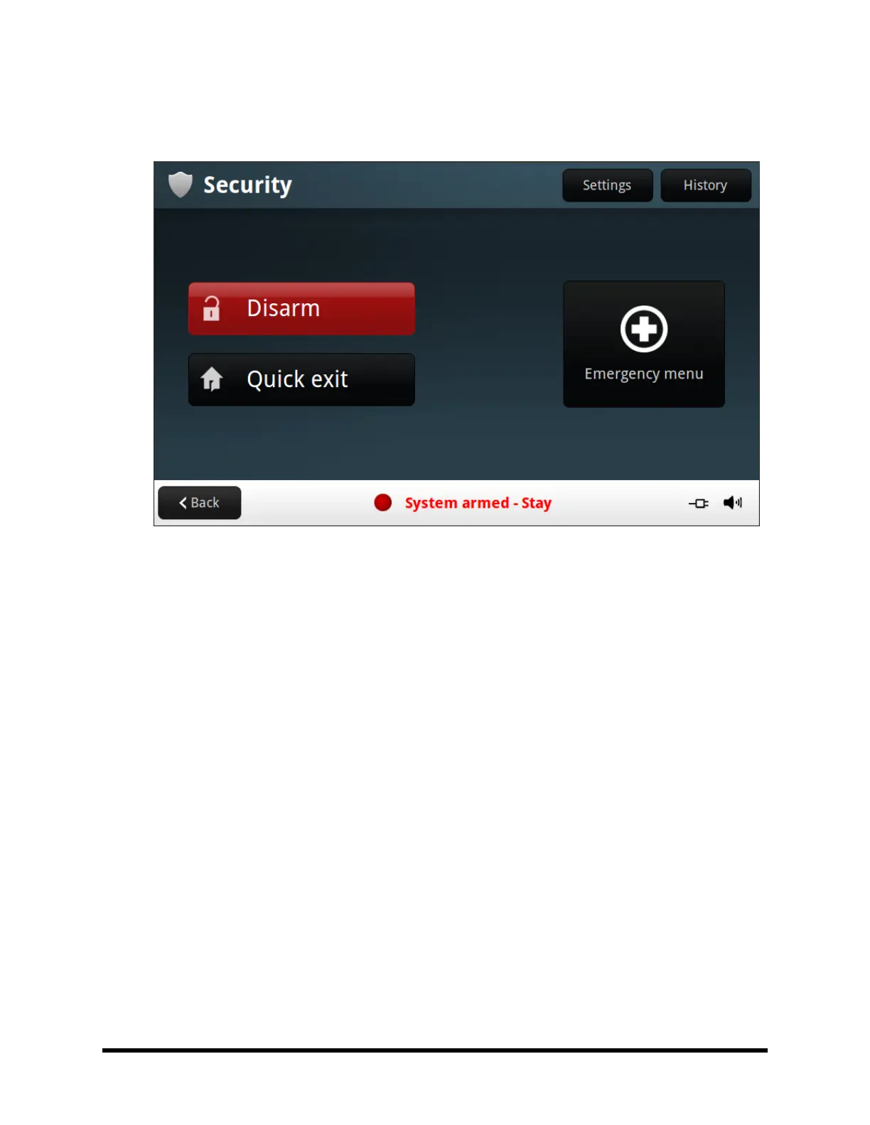3. The left side of the screen shows any events that have occurred while the system was armed.