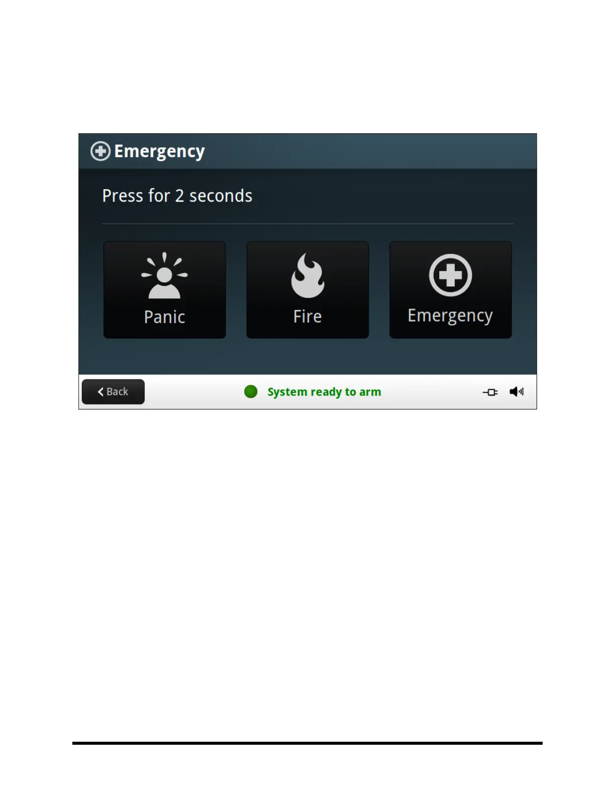 In the event of an emergency, press and hold the emergency button for at least 2 seconds to activate the alarm.
