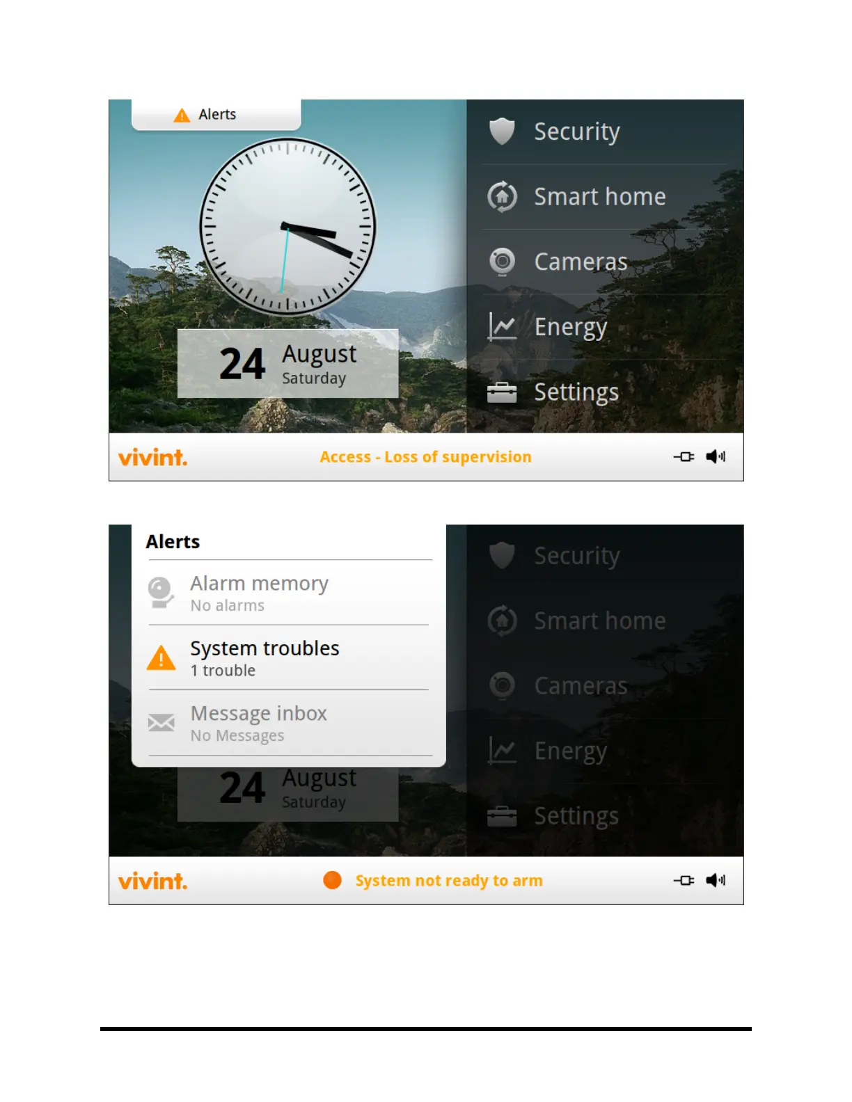 The Alerts icon displays until the trouble alerts are acknowledged, then it remains constantly lit until all the