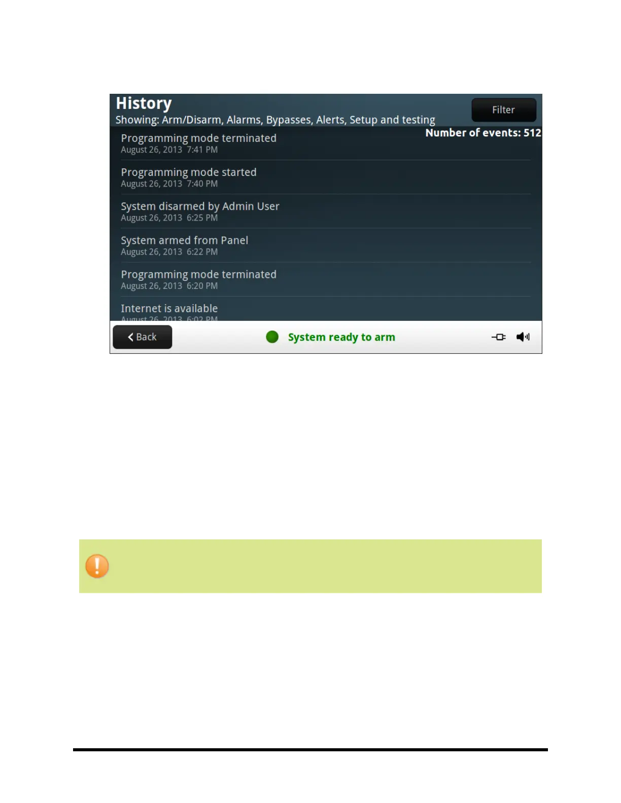 3. The log of system events appears. Use the ↑ and ↓ arrows to scroll through the log.