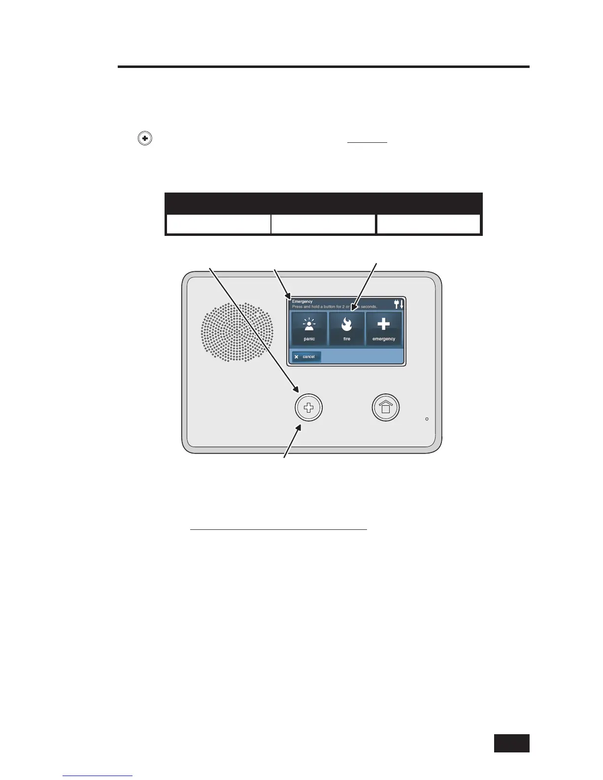 button displays the emergency screen, it does not trigger an alarm. The installer