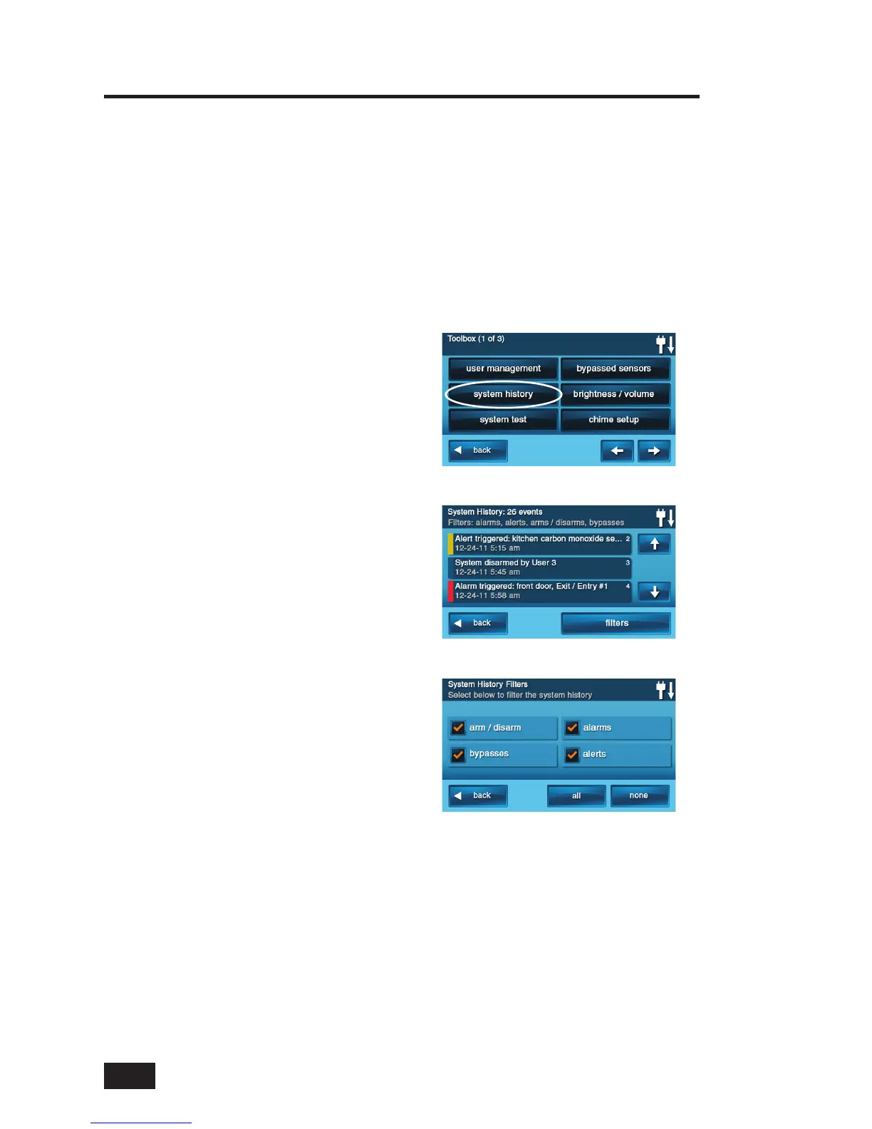 To make reading the log easier, the system history display can be “fi ltered” to show selected events