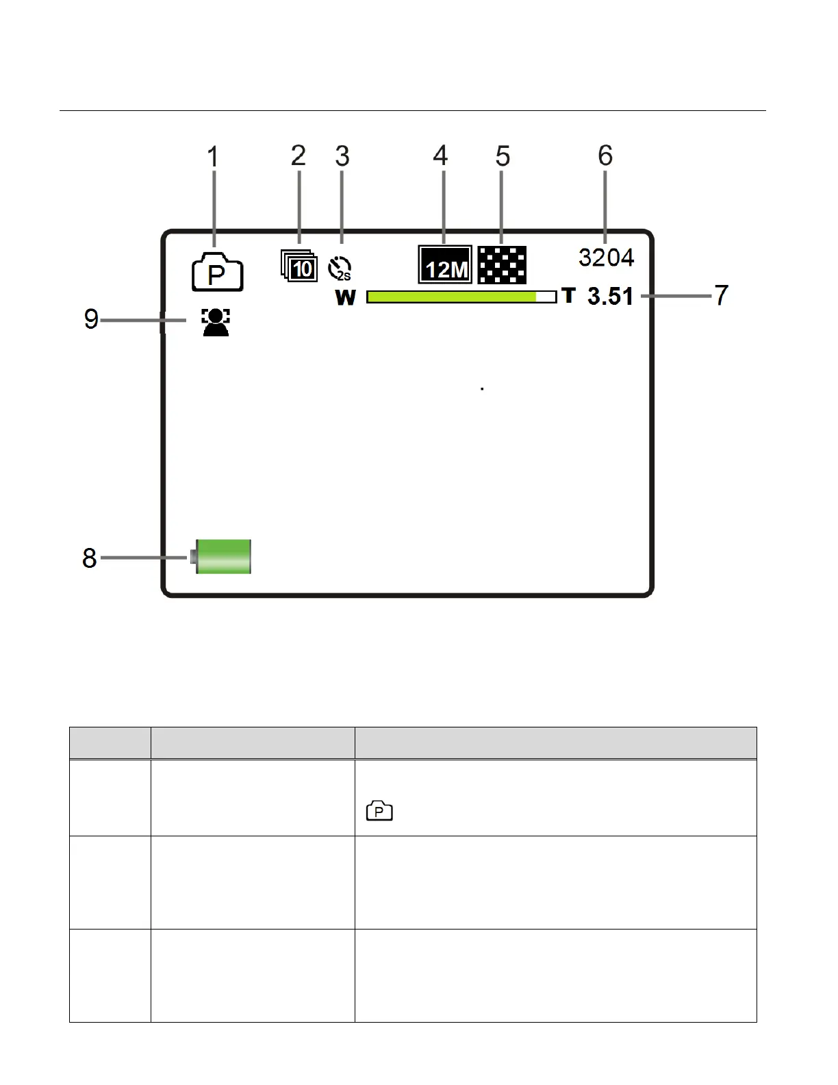 PHOTO CAPTURE MODE LCD ICON STATUS DESCRIPTION
