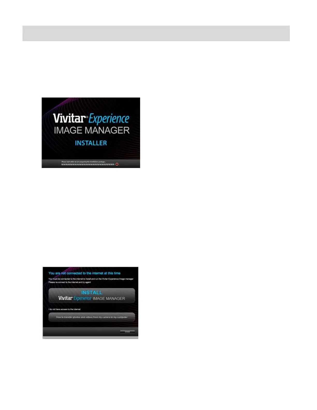 internet and then click the “Install Vivitar Experience Image Manager” button to begin the