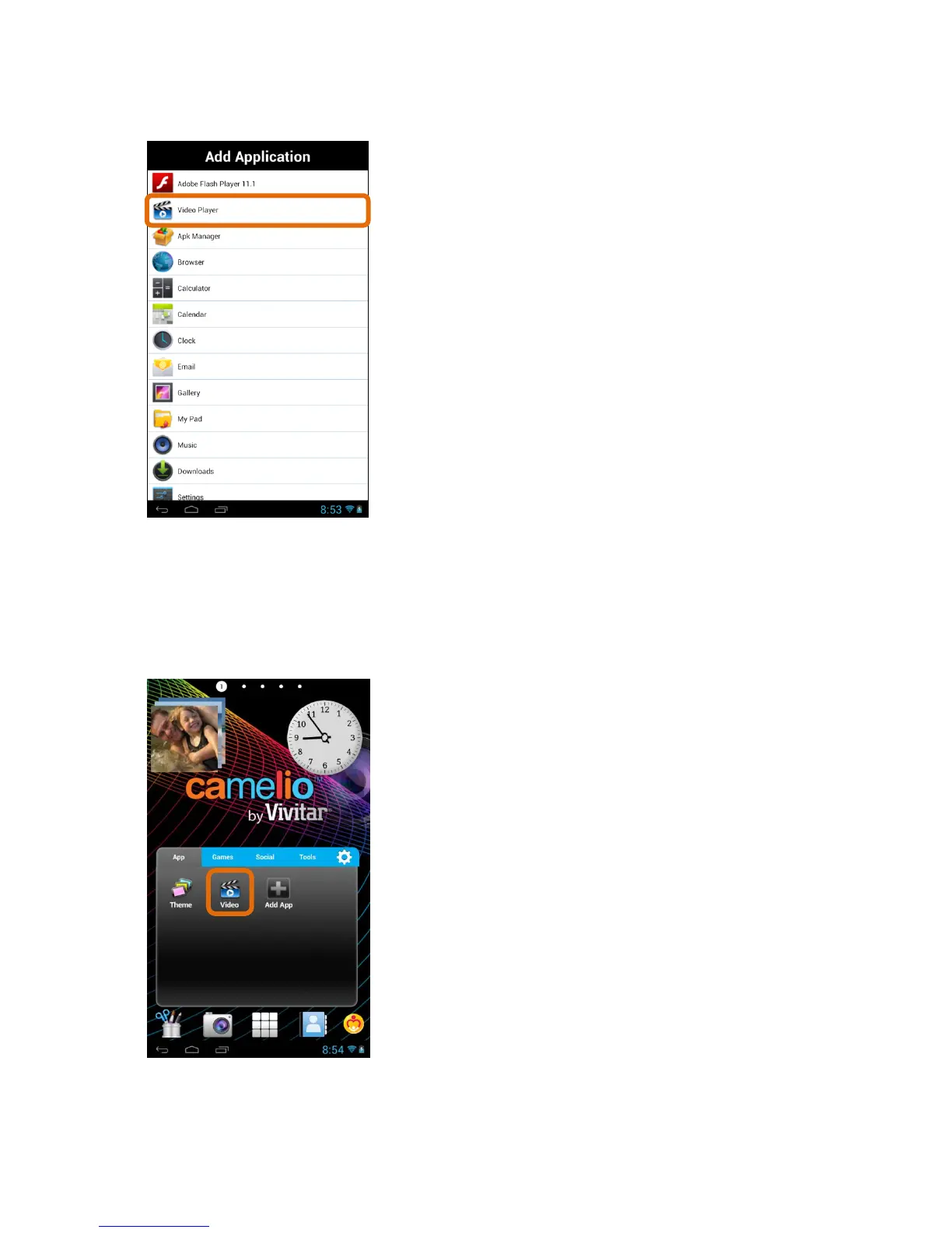 Vivitar Camelio - Add Application Shortcut; View Added Shortcut
