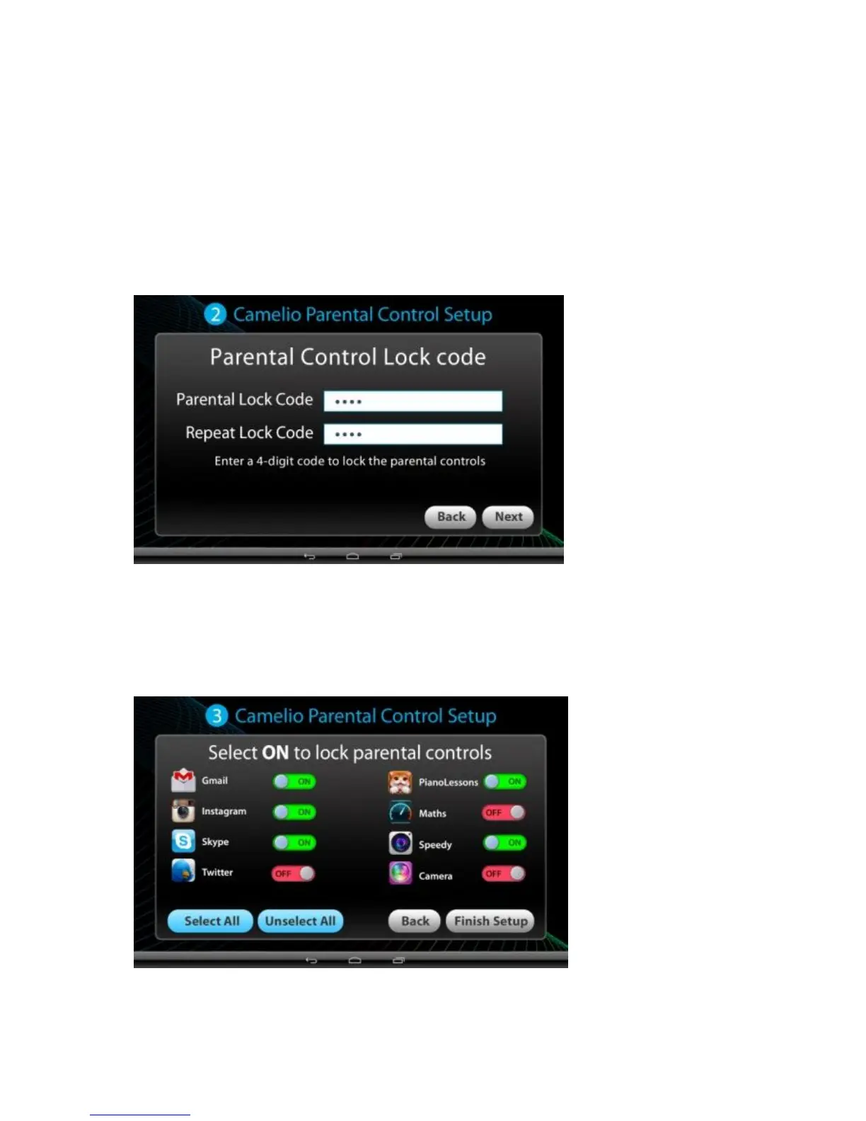 4. Parental Control Setup – Selecting the Locked Apps: