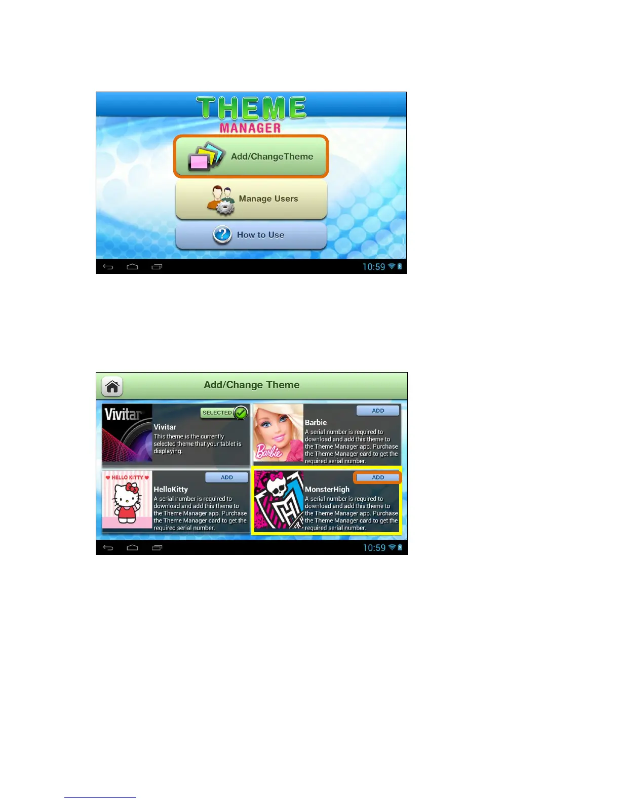 To activate a new Theme, touch the ADD button by the selected Theme.