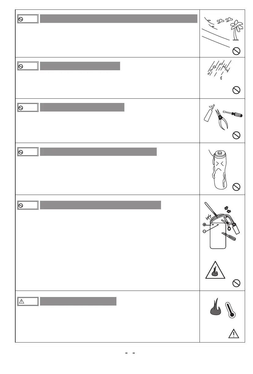 Do not allow the battery’s contacts to to come into contact with metal or metallic objects. To avoid fire