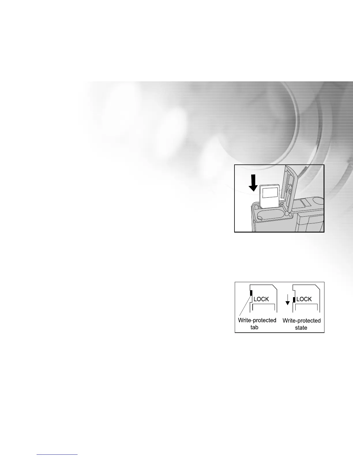 2. Insert the SD memory card pins-first, so that the label of the card faces