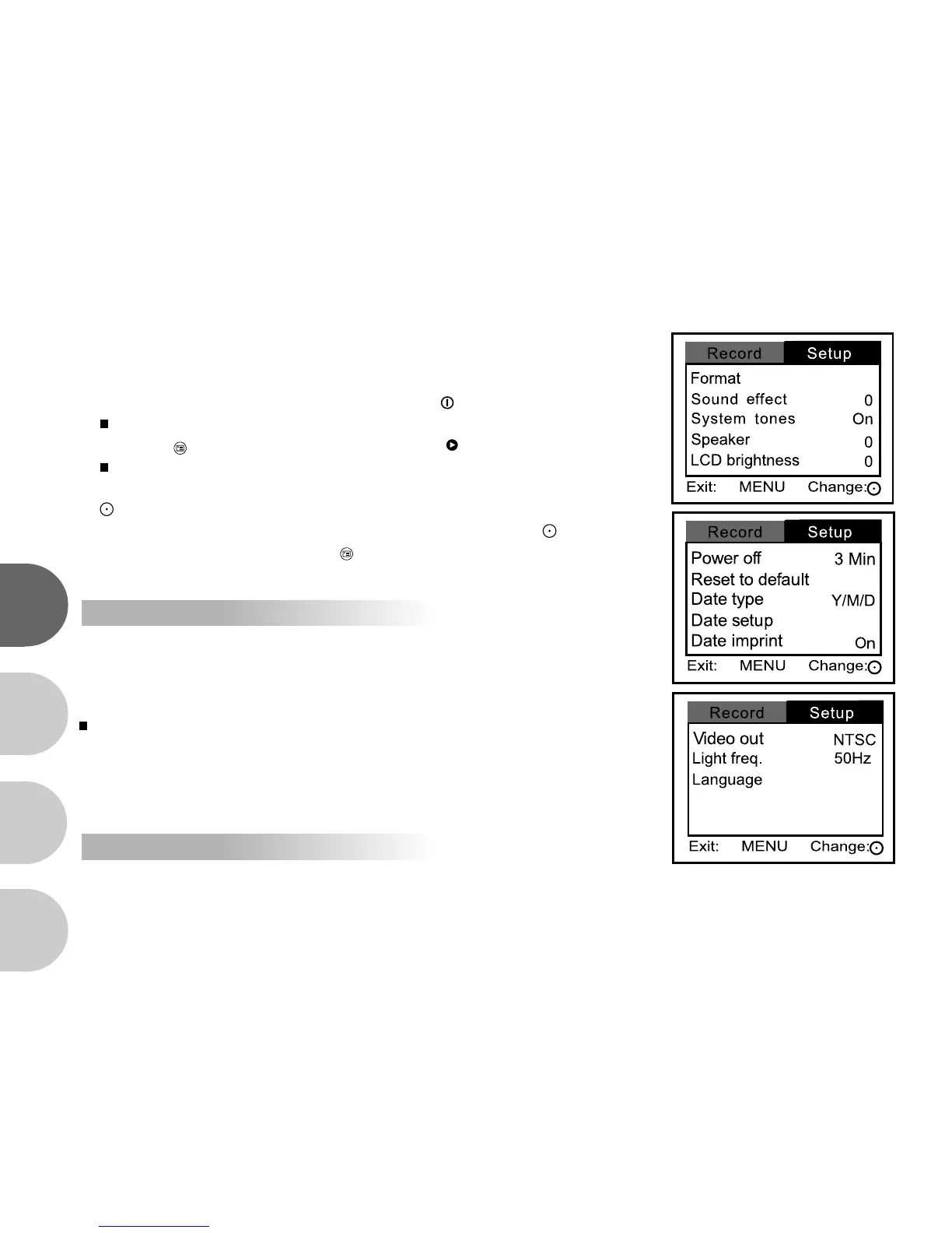 Setup menu