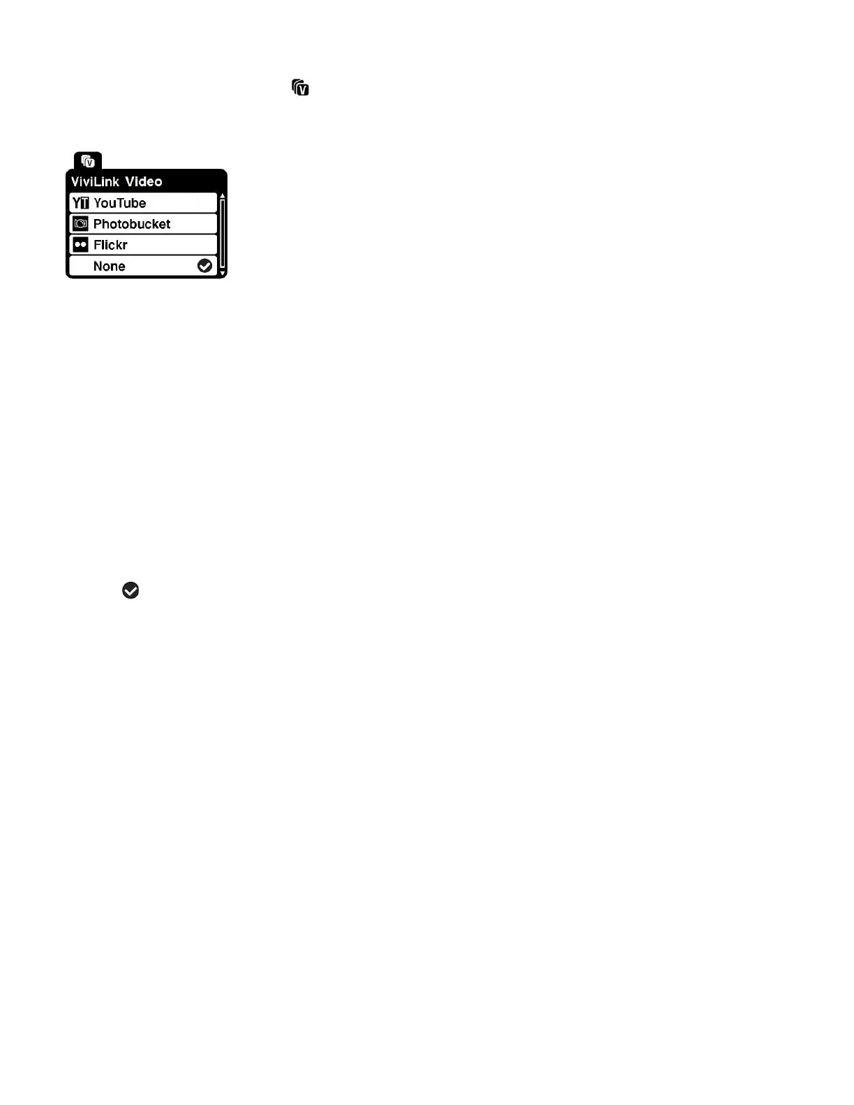 Note: The icon of the selected ViviLink destination also appears in Video Playback mode on