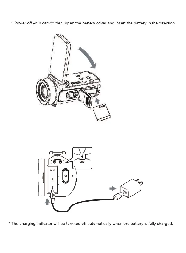 2. You can use supplied USB cable to charge your camcorder via a adapter(5V/1A~5V/2A)