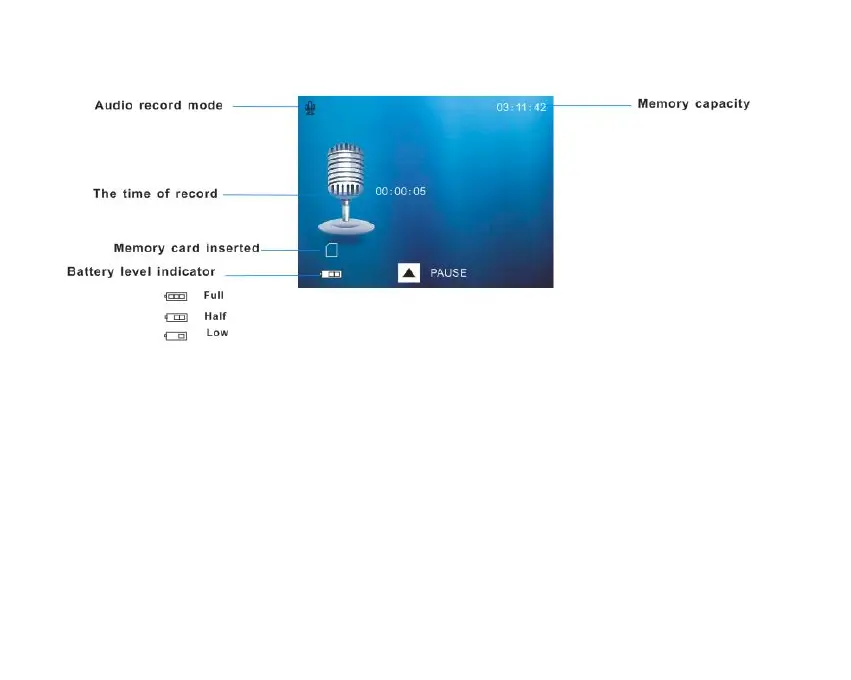 3. The lapsed time for the audio clip appears in the center of the LCD.
