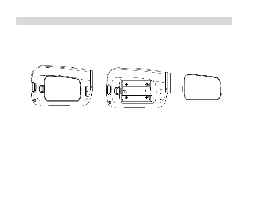 Your camcorder requires three (3) AAA batteries. Insert the batteries into the camcorder: