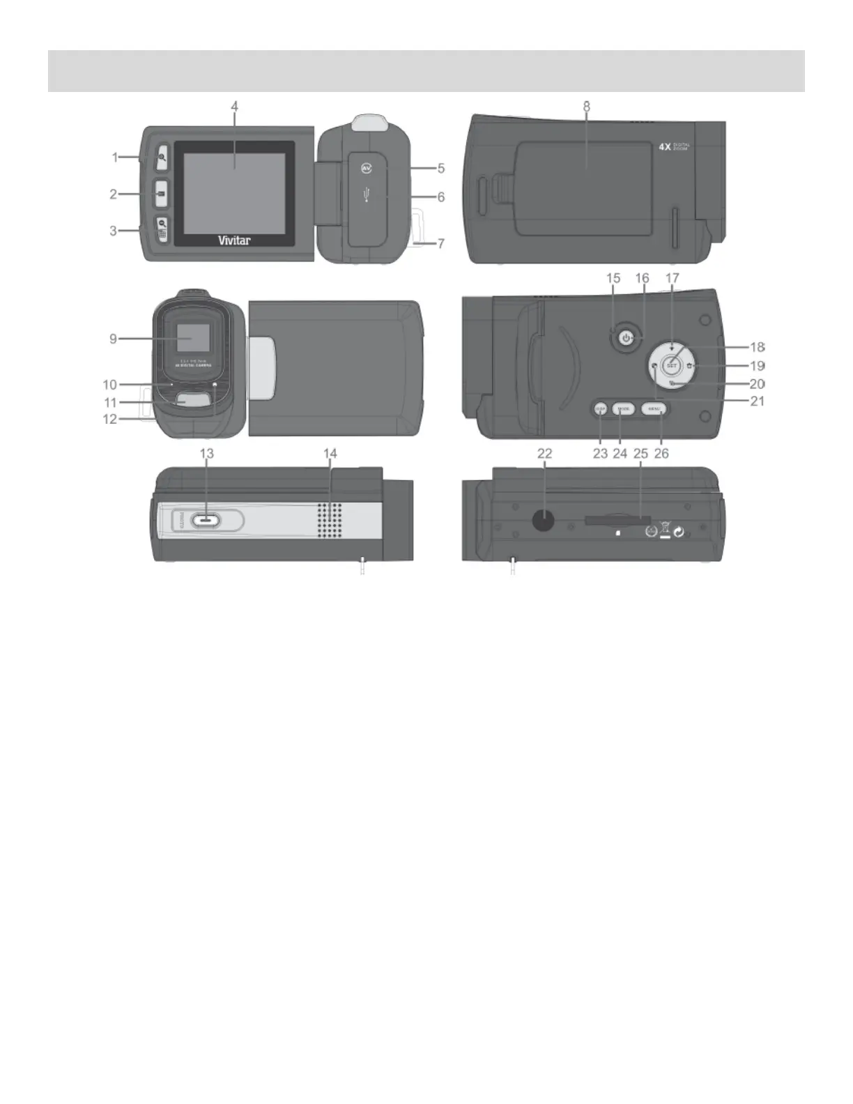 Vivitar DVR 538NHD - Parts of the Digital Camcorder; Camcorder Component Identification