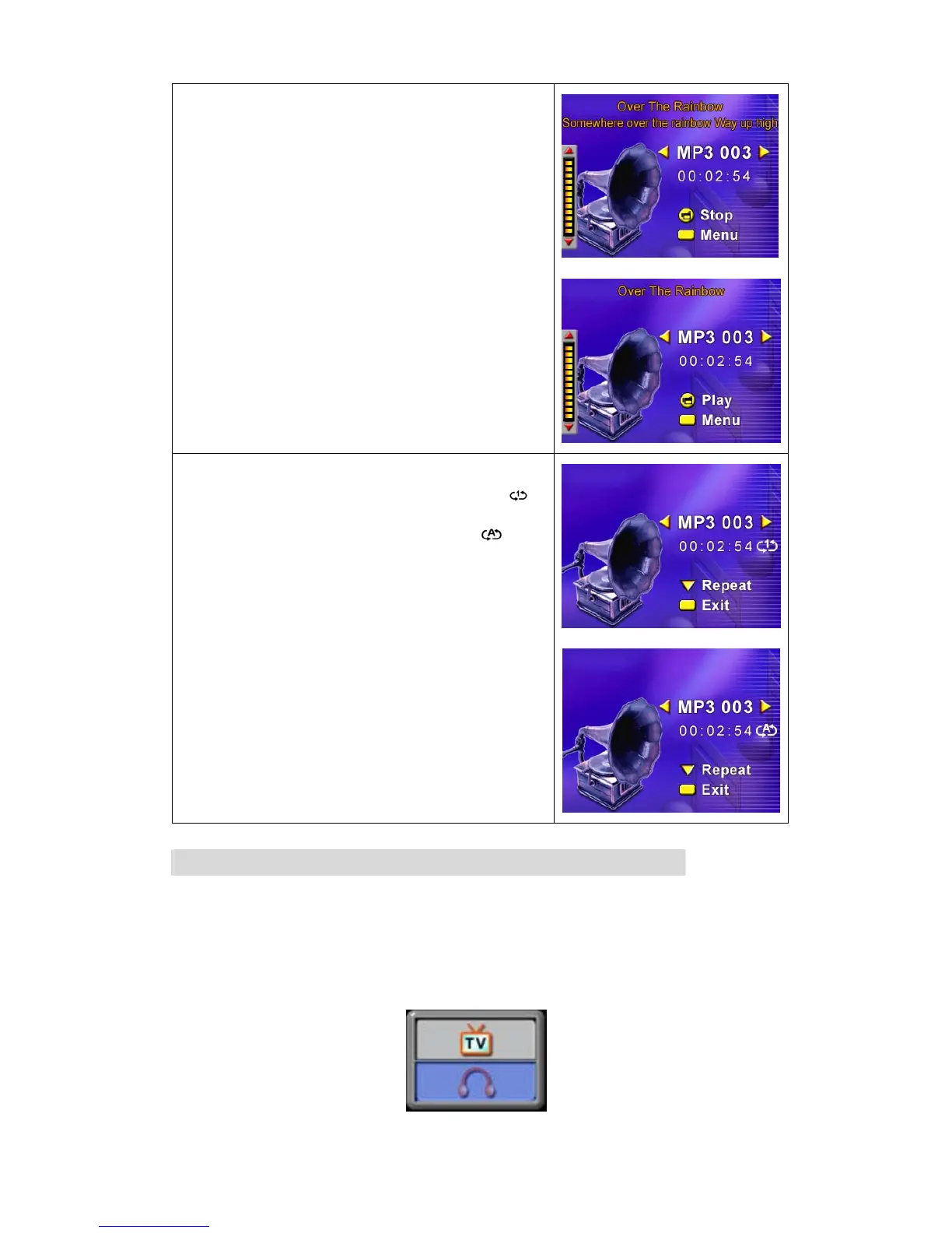 on the LCD Screen. Choose earphone or TV and press Enter Button to validate the setting.