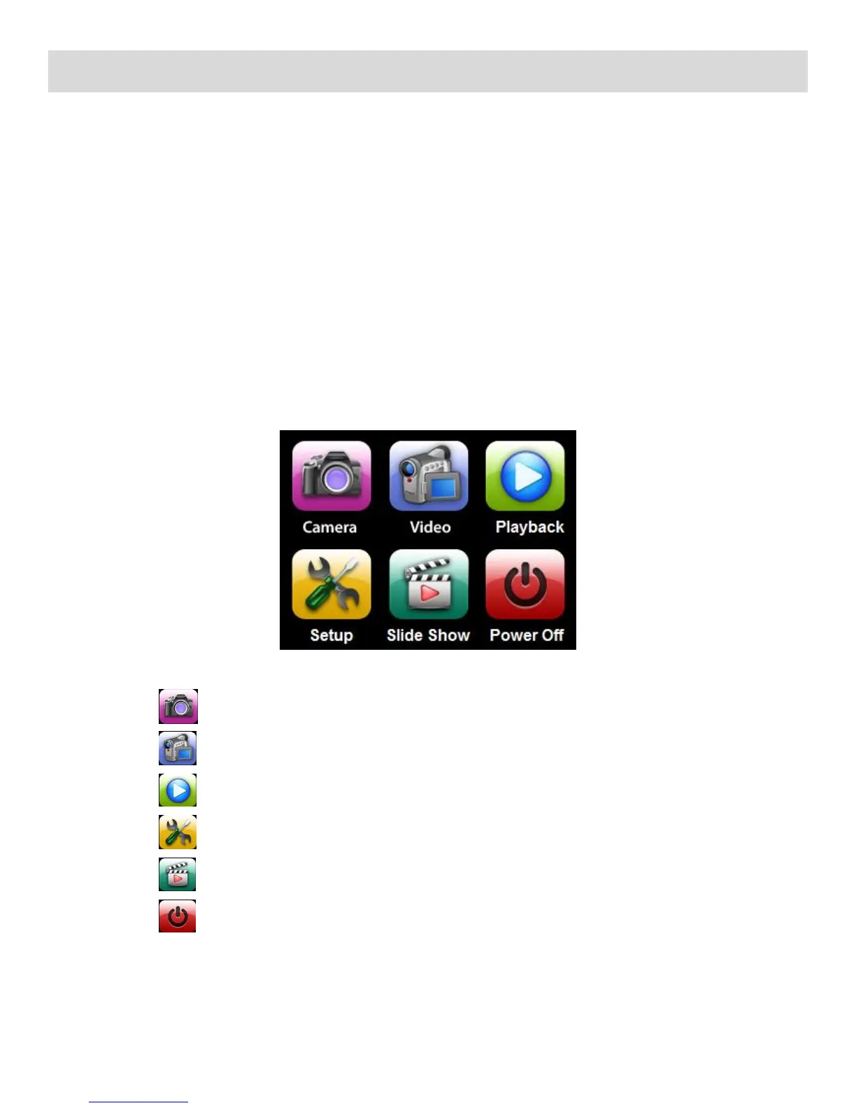 The Home screen menu allows you quick access to the camcorder modes and settings as well as to