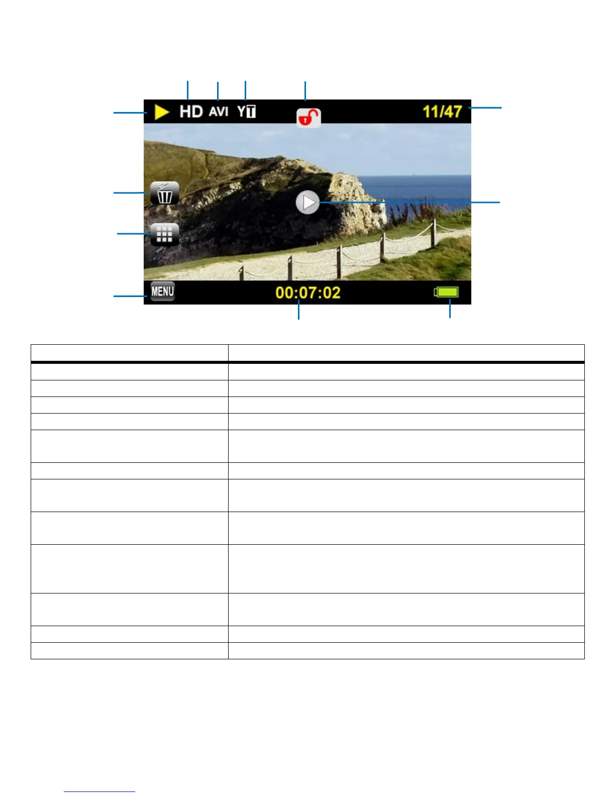 VIDEO PLAYBACK MODE: LCD SCREEN ICONS