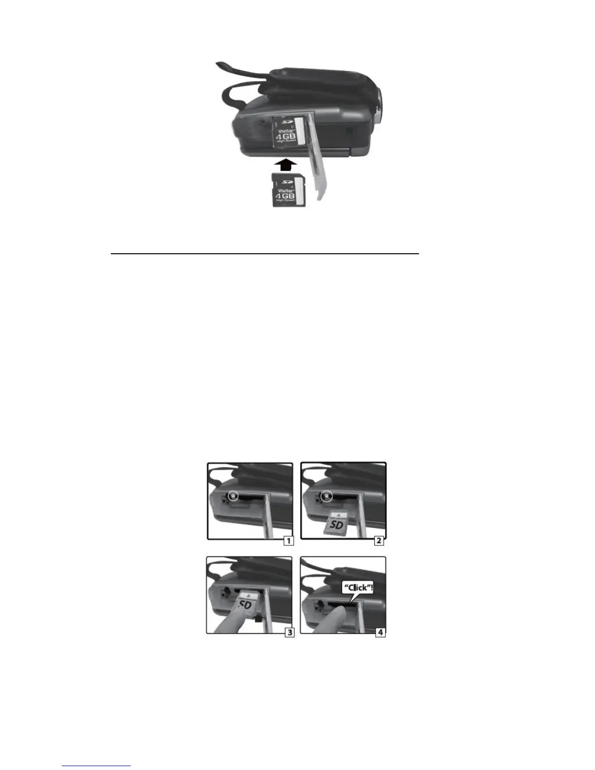 3) Push the SD card until you hear a slight clicking sound. This indicates the SD card has been