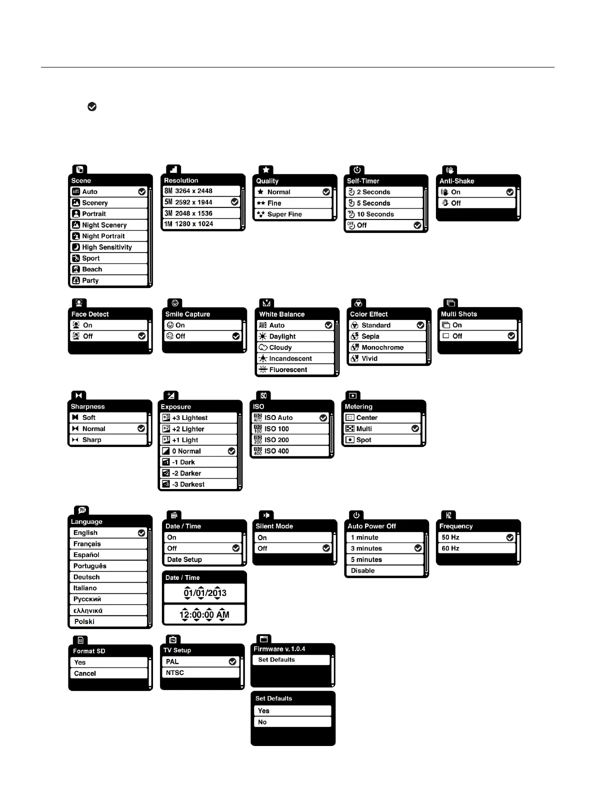 Vivitar DVR 708HD - Photo Capture Mode Menus