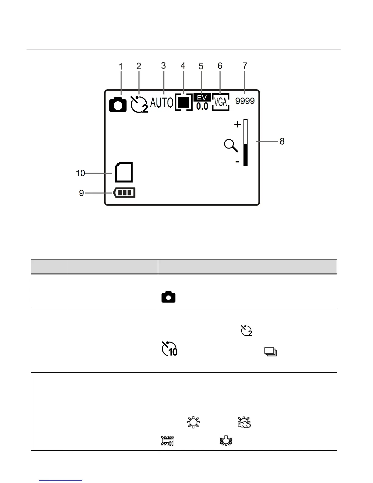 PHOTO CAPTURE MODE LCD ICON STATUS DESCRIPTION