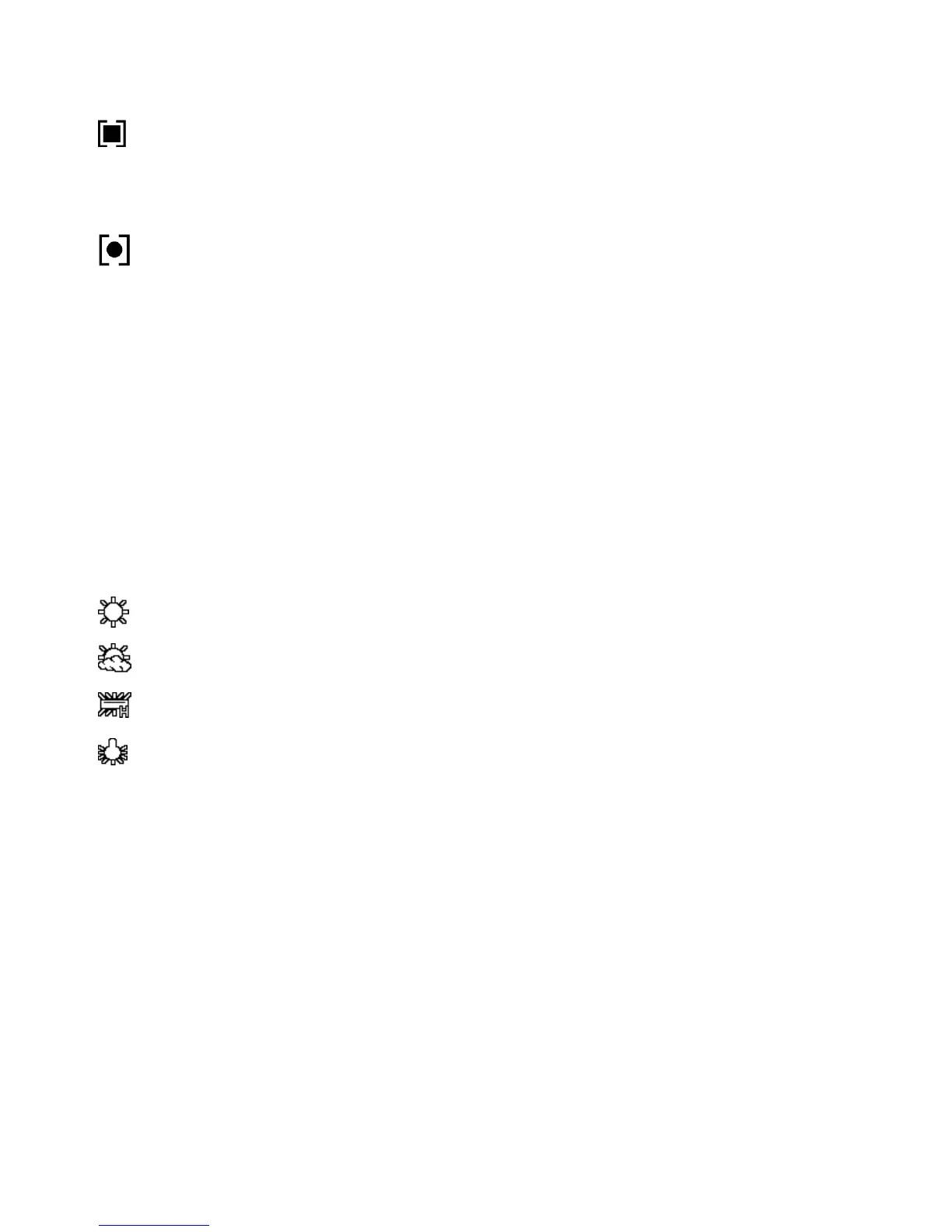 Spot – Meters the area within the spot point frame at the center of the LCD to set the