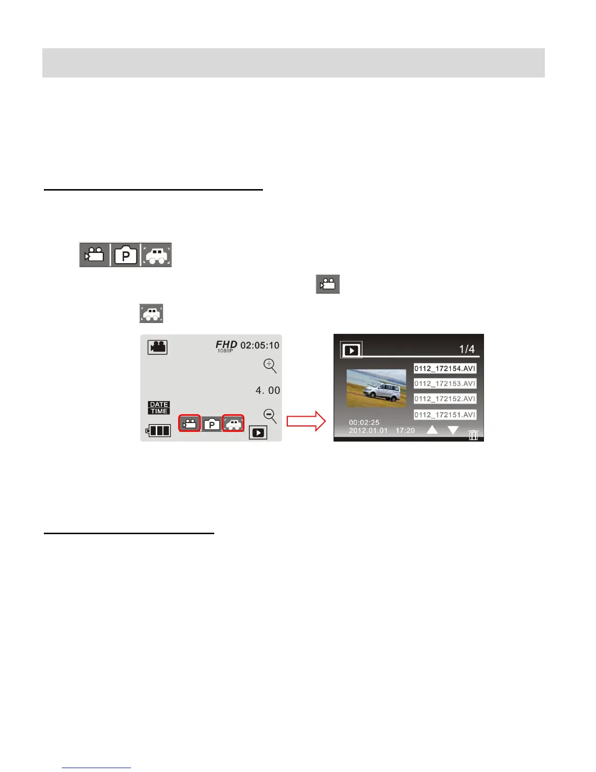 2. Touch either of the Video Capture Mode icon or the Vehicle Mounted Video Capture
