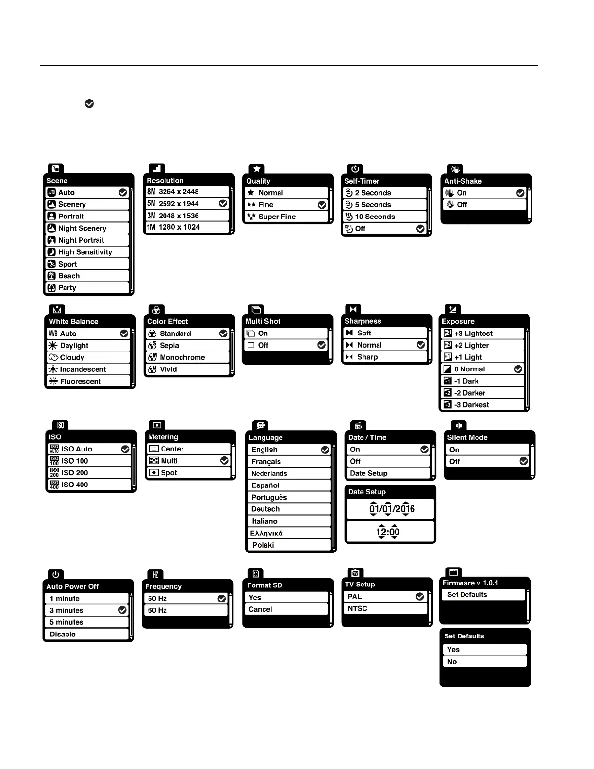 Vivitar DVR 808HD - Photo Capture Mode Menus