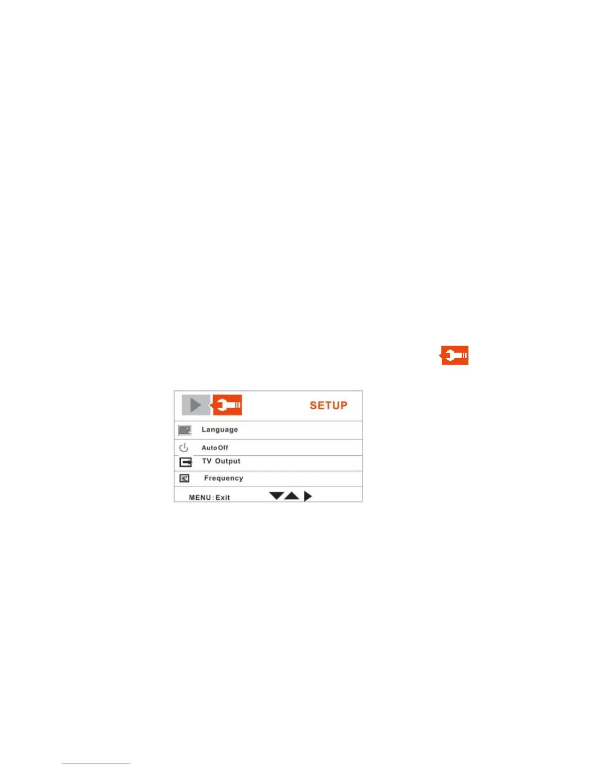 4. Push the OK joystick button Right to move to the SETUP tab.