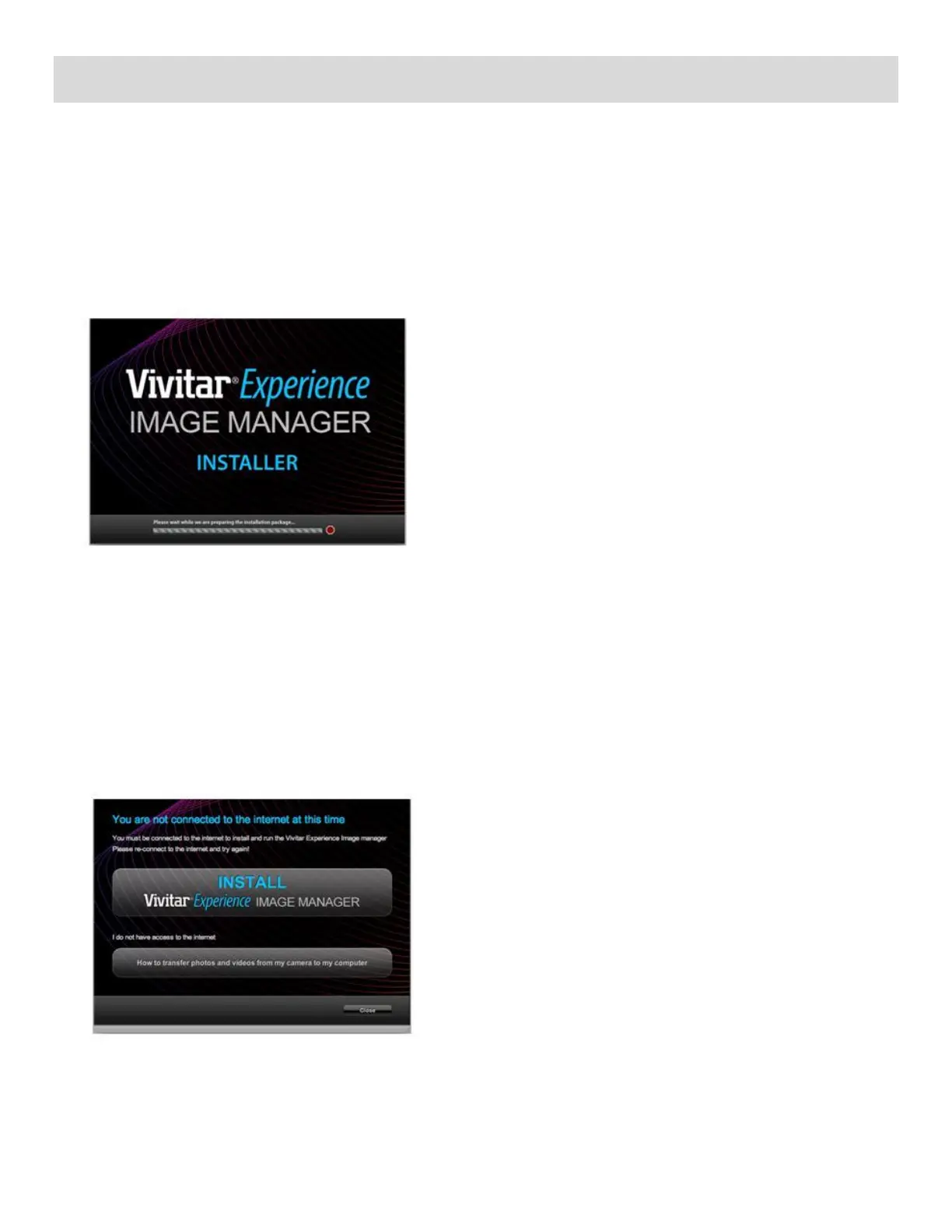 You must be connected to the internet to install and run the Vivitar Experience Image Manager