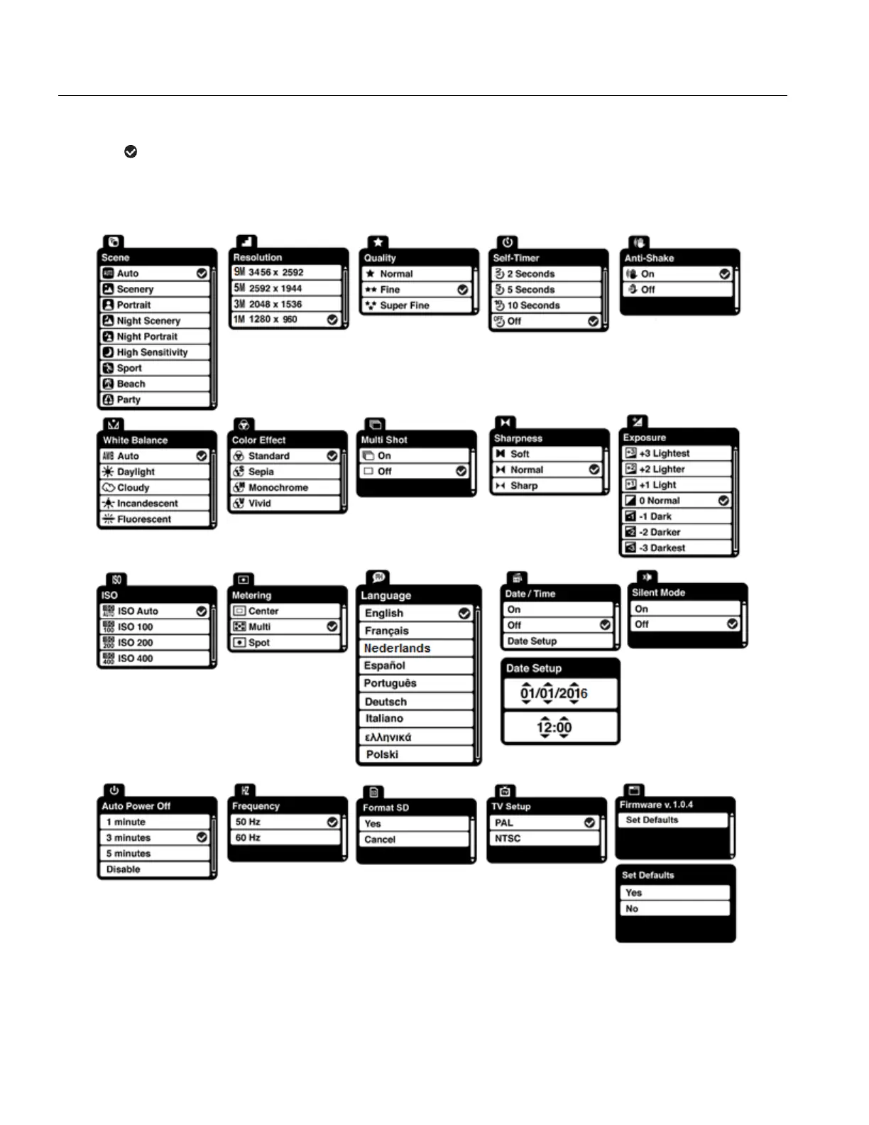 Vivitar DVR 908M - Photo Capture Menu Options