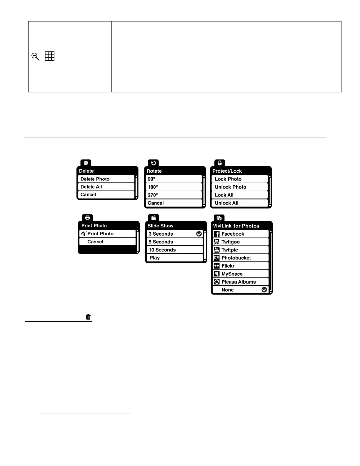 The following are the menus that appear in your digital camcorder’s Photo Playback Mode: