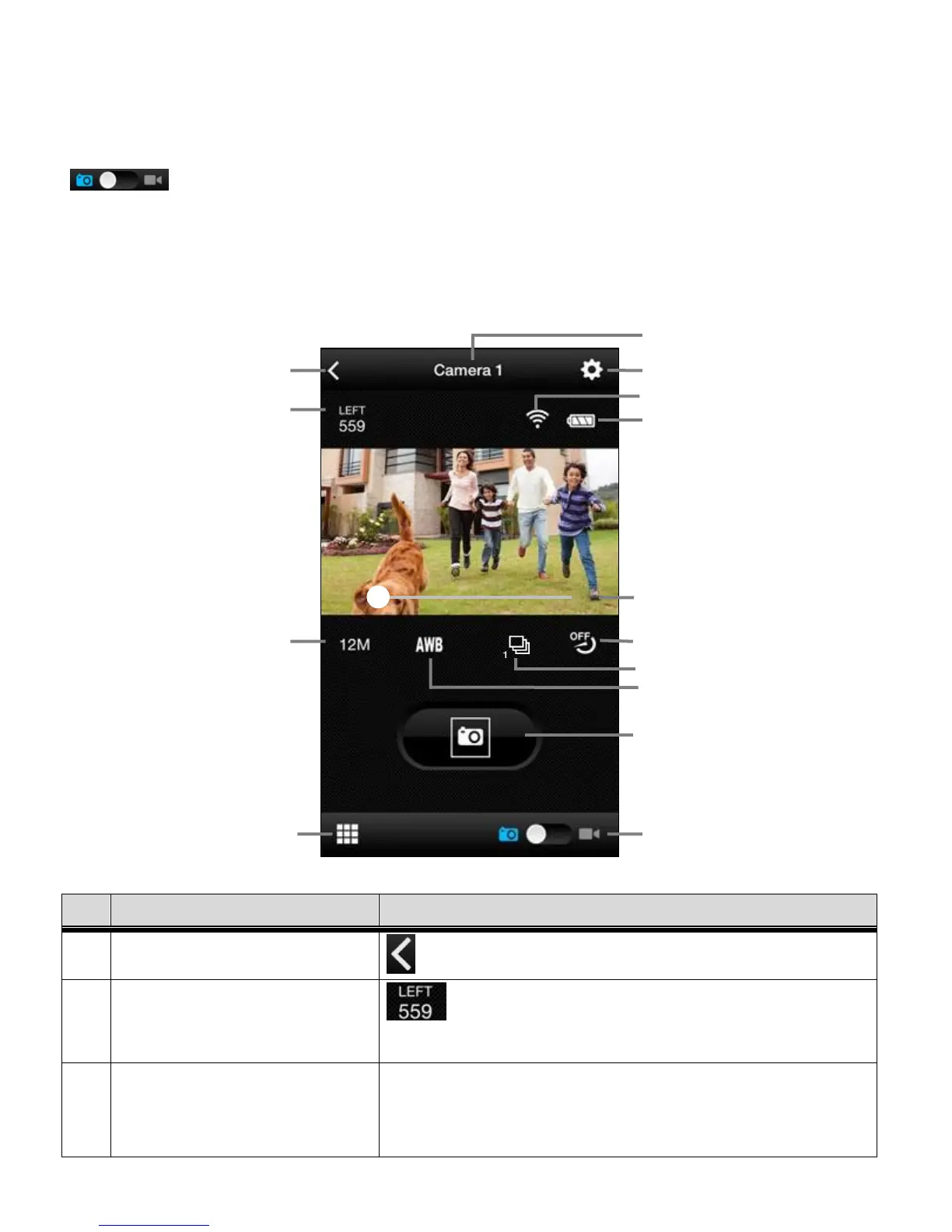 To change to Photo Capture Mode, slide the Switch Mode indicator to the Photo icon.
