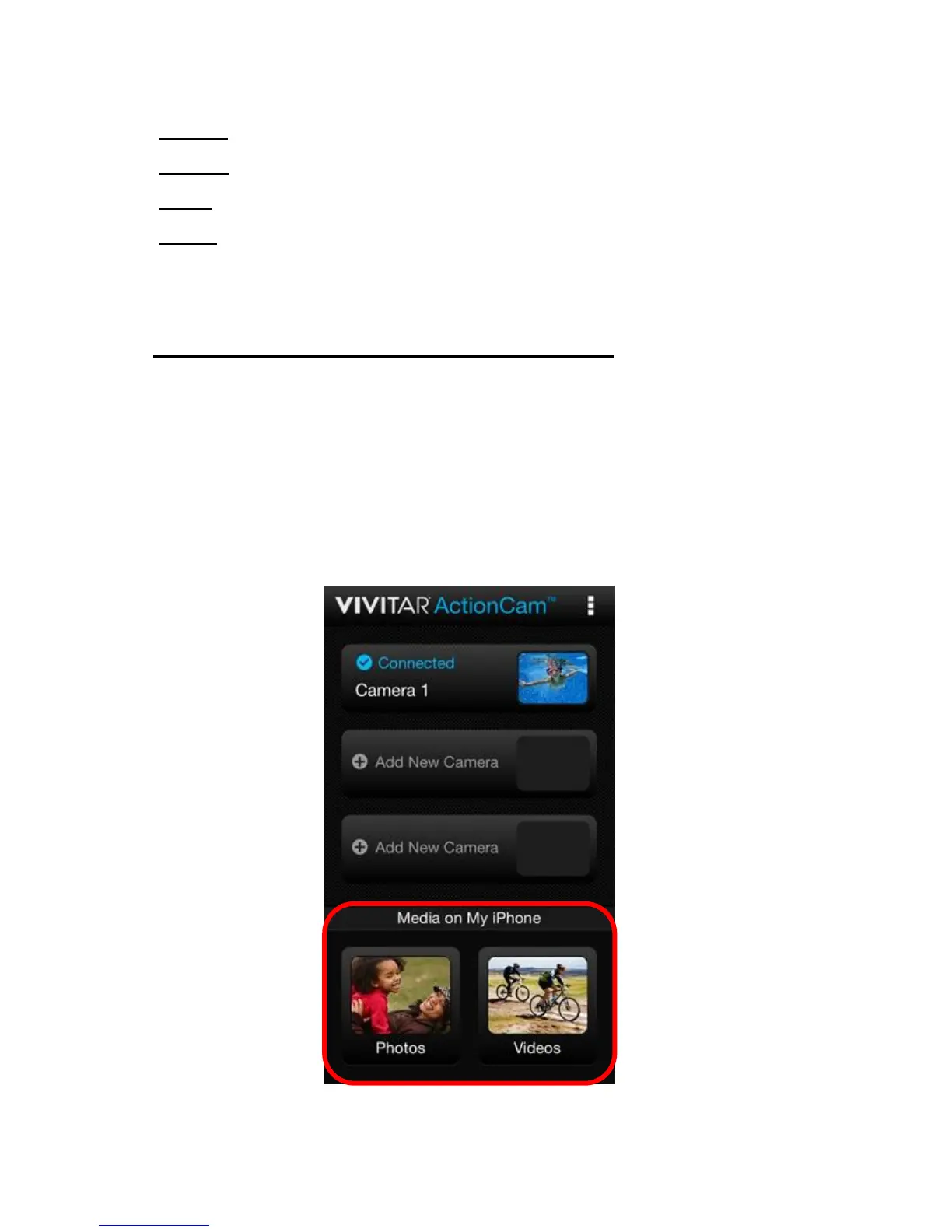 Connect: Tap Connect to reconnect and to open the connected Action cam live mode.