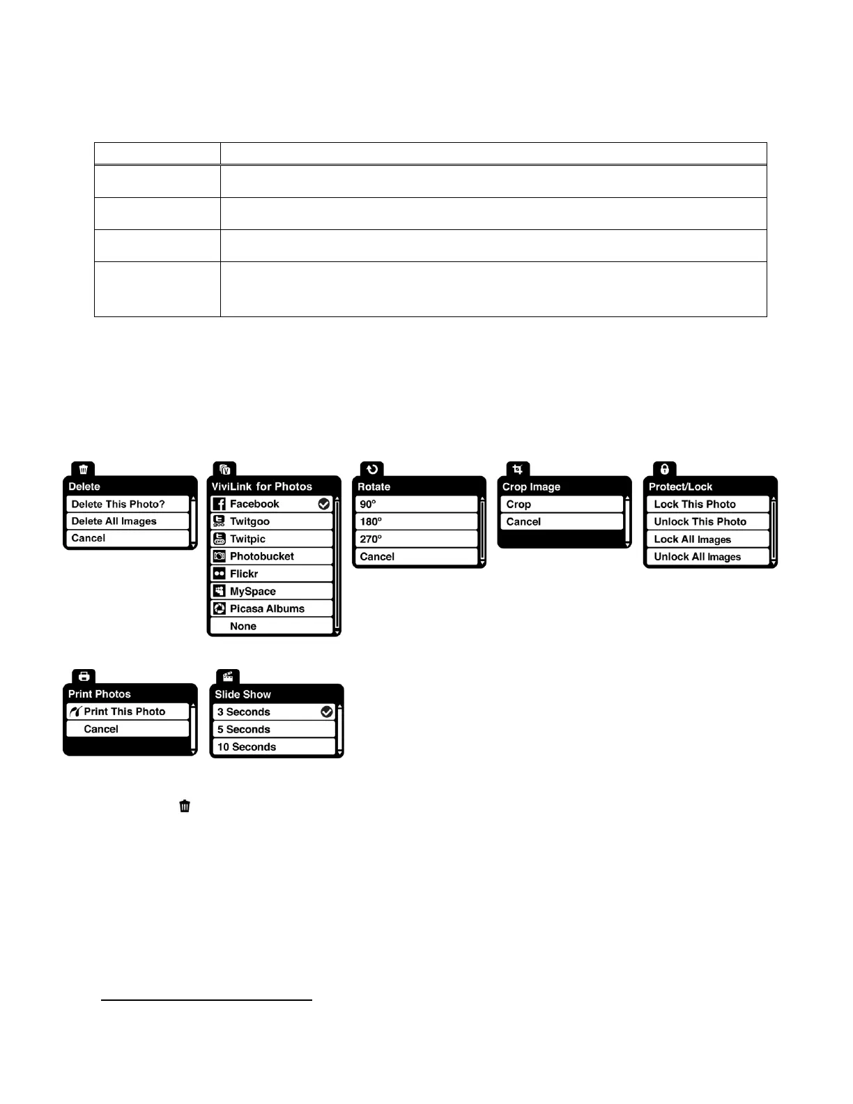 The following are the menus that appear in your camera‟s Photo Playback Mode: