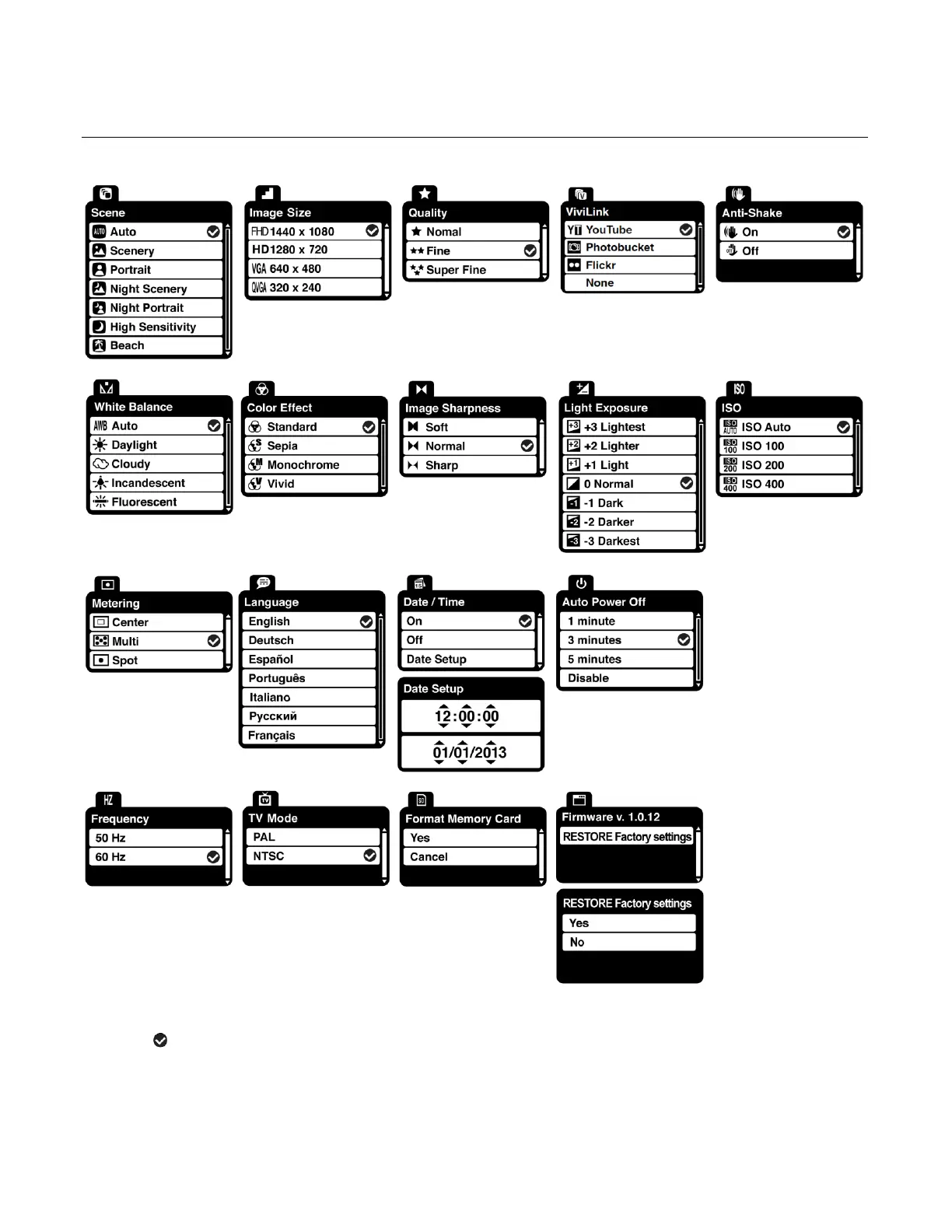 Vivitar DVR 992HD - Video Capture Mode Menus