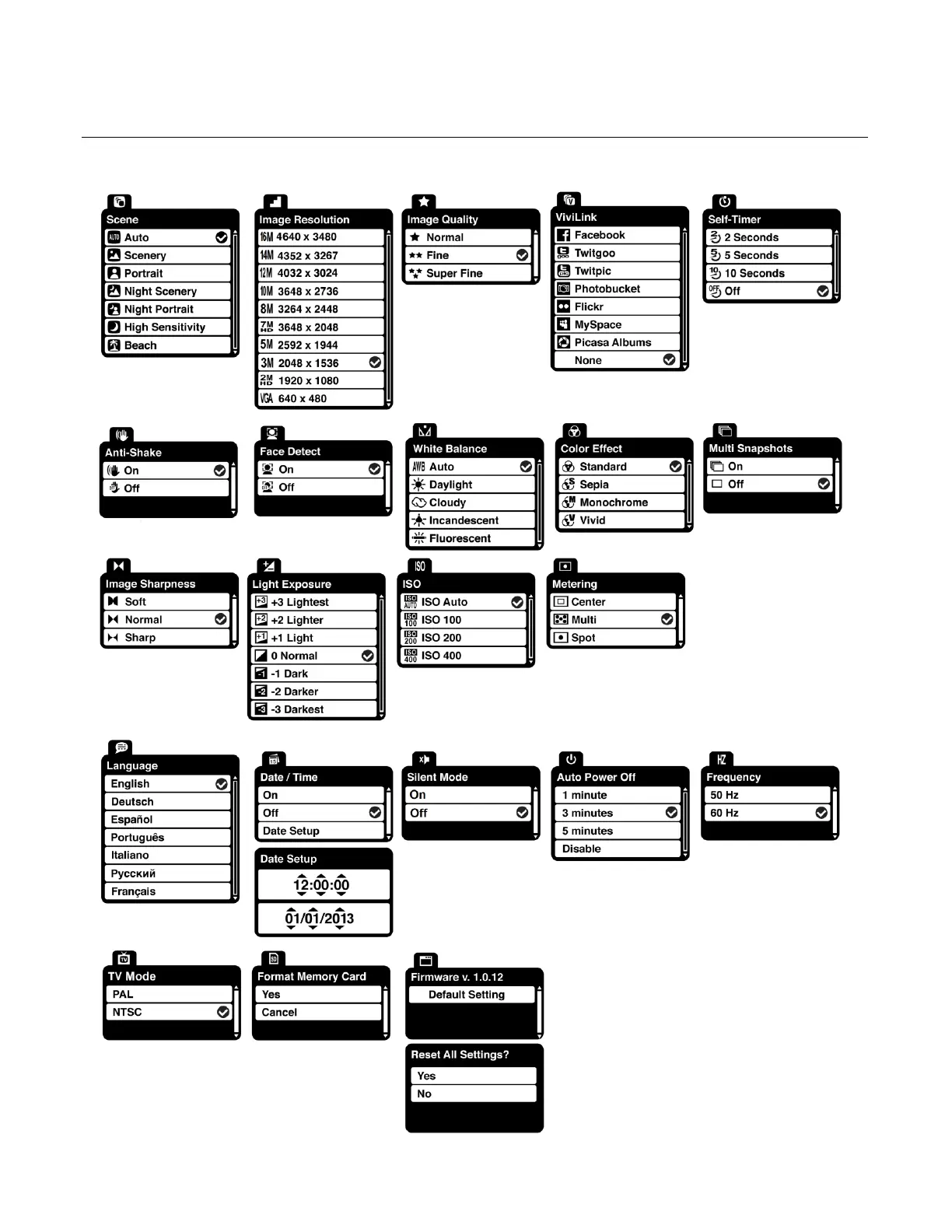 Vivitar DVR 992HD - Photo Capture Mode Menus