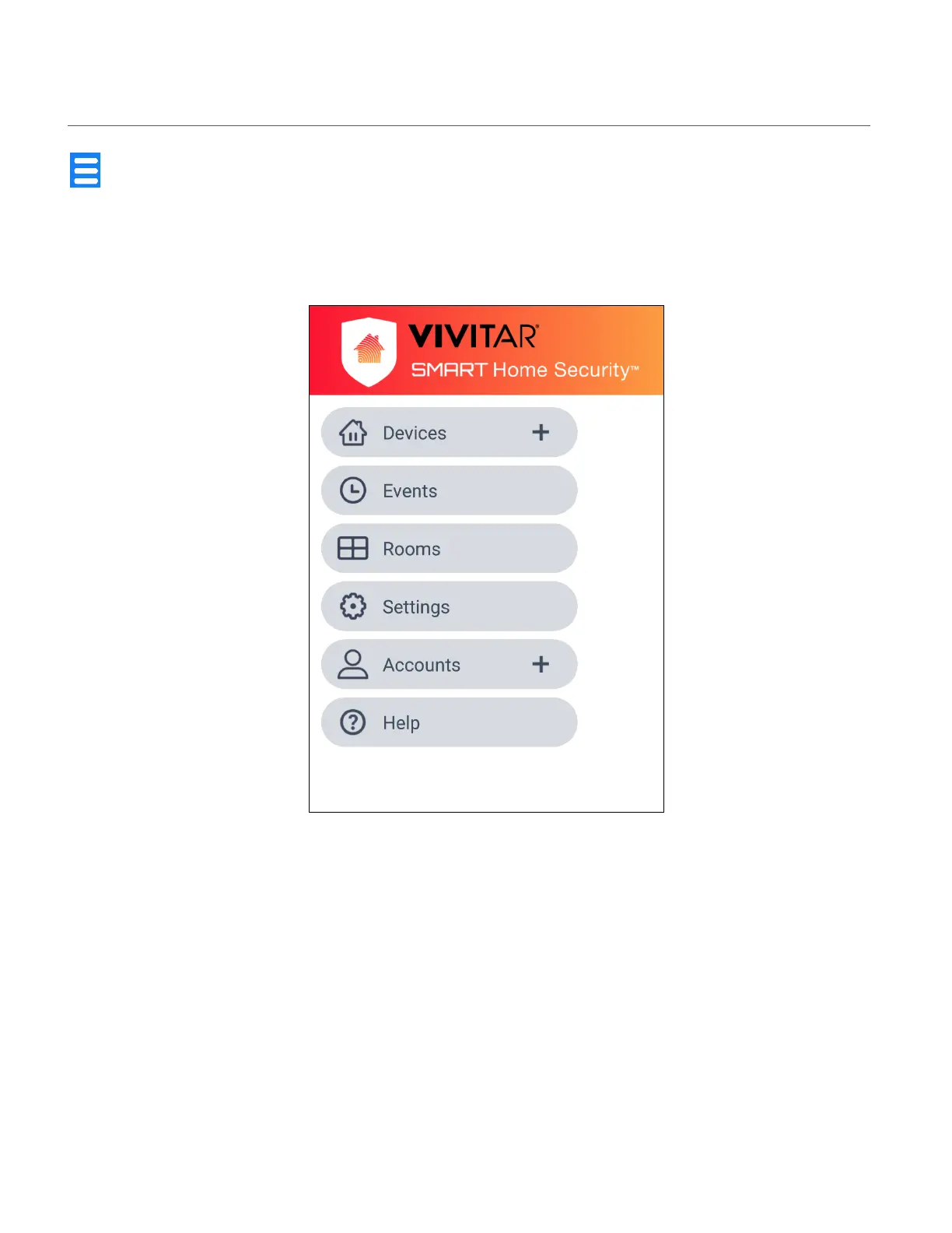 Devices +, Events, Rooms, Settings, Accounts +, Help