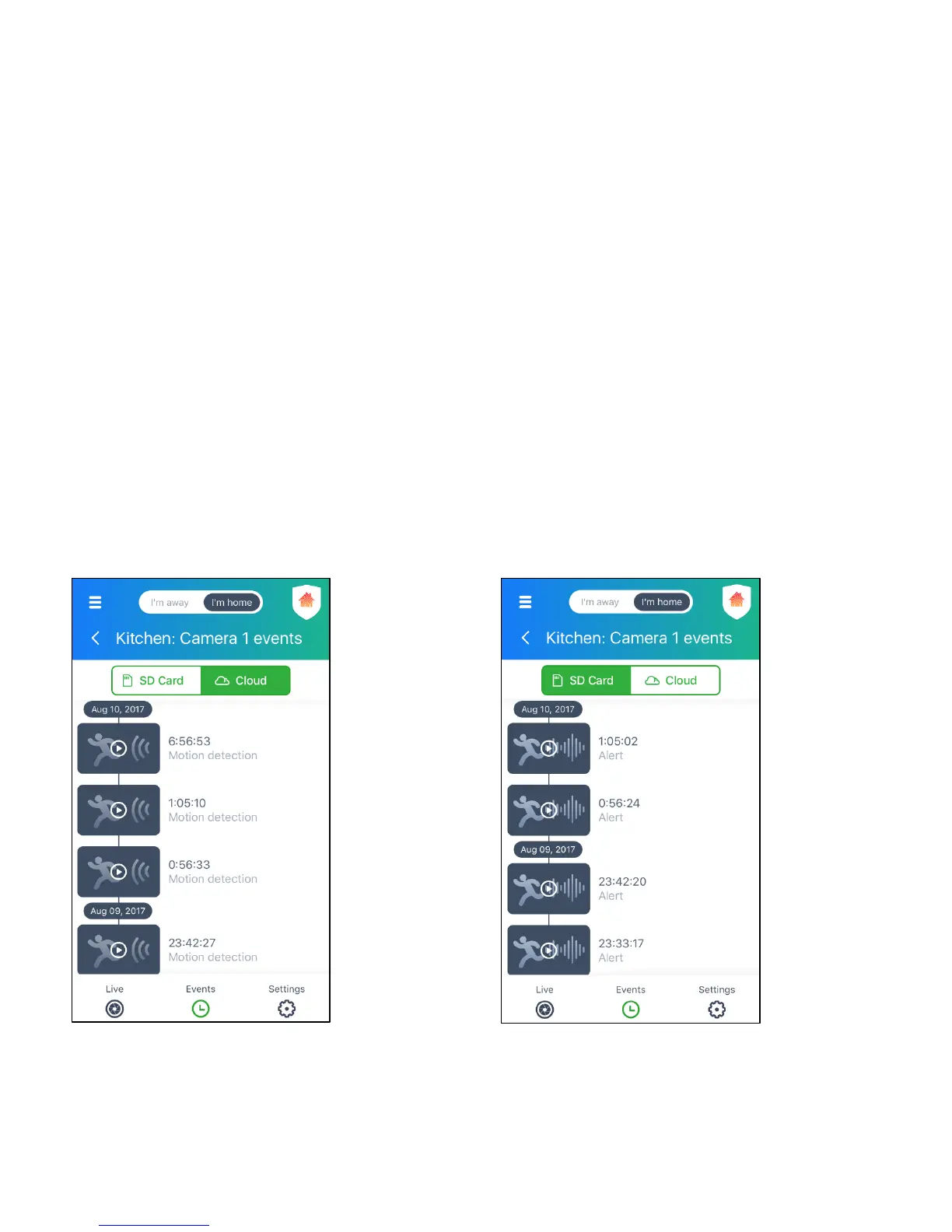 NOTE: To subscribe and view your Cloud Events, tap on Settings > Cloud Subscription.