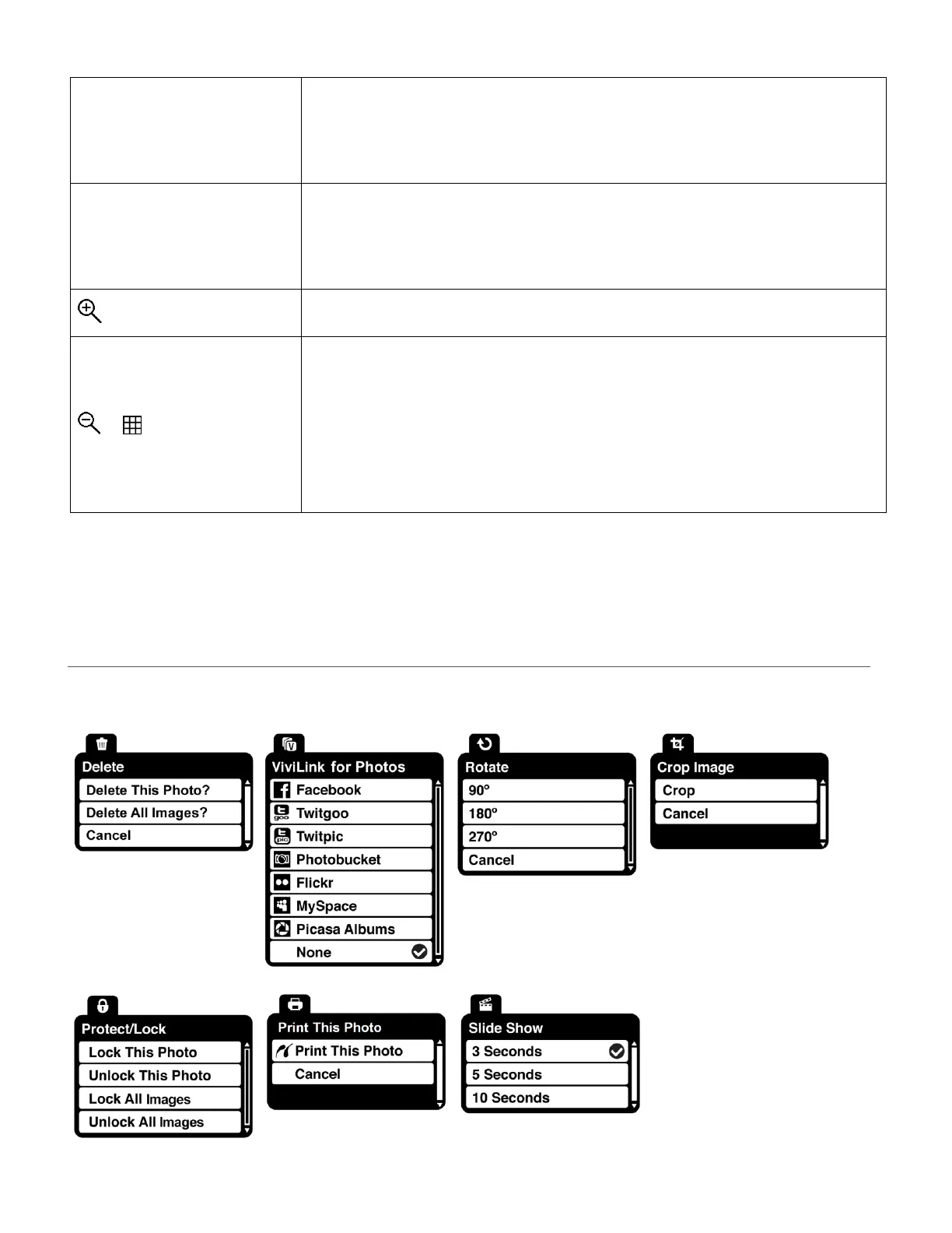 The following are the menus that appear in your camera’s Photo Playback Mode: