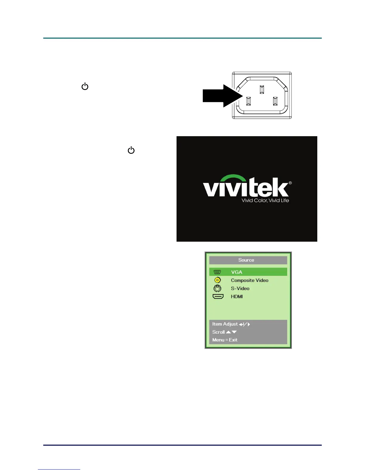 button to turn on the projector.