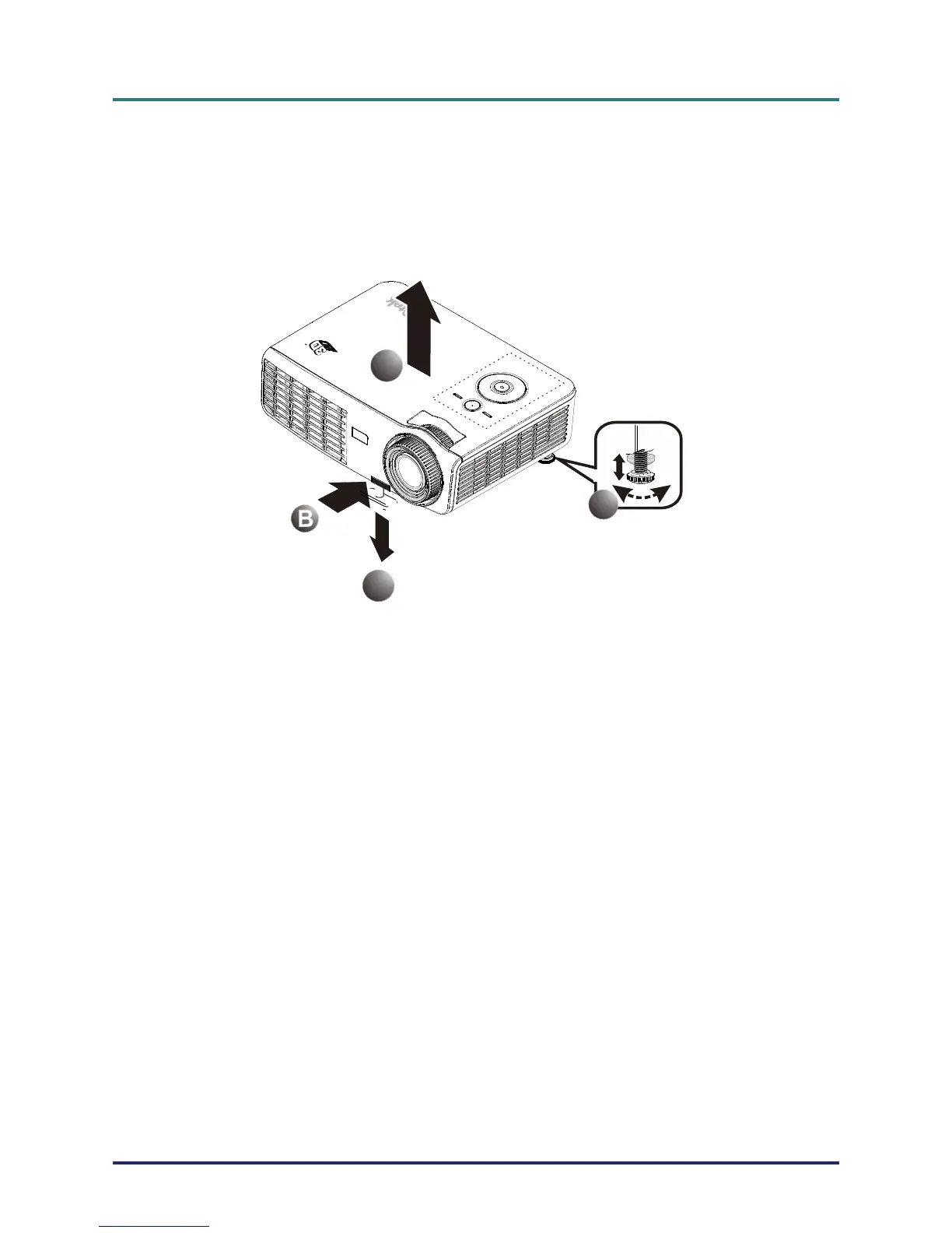 To raise the level of the projector, lift the projector [A] and press the height-adjuster