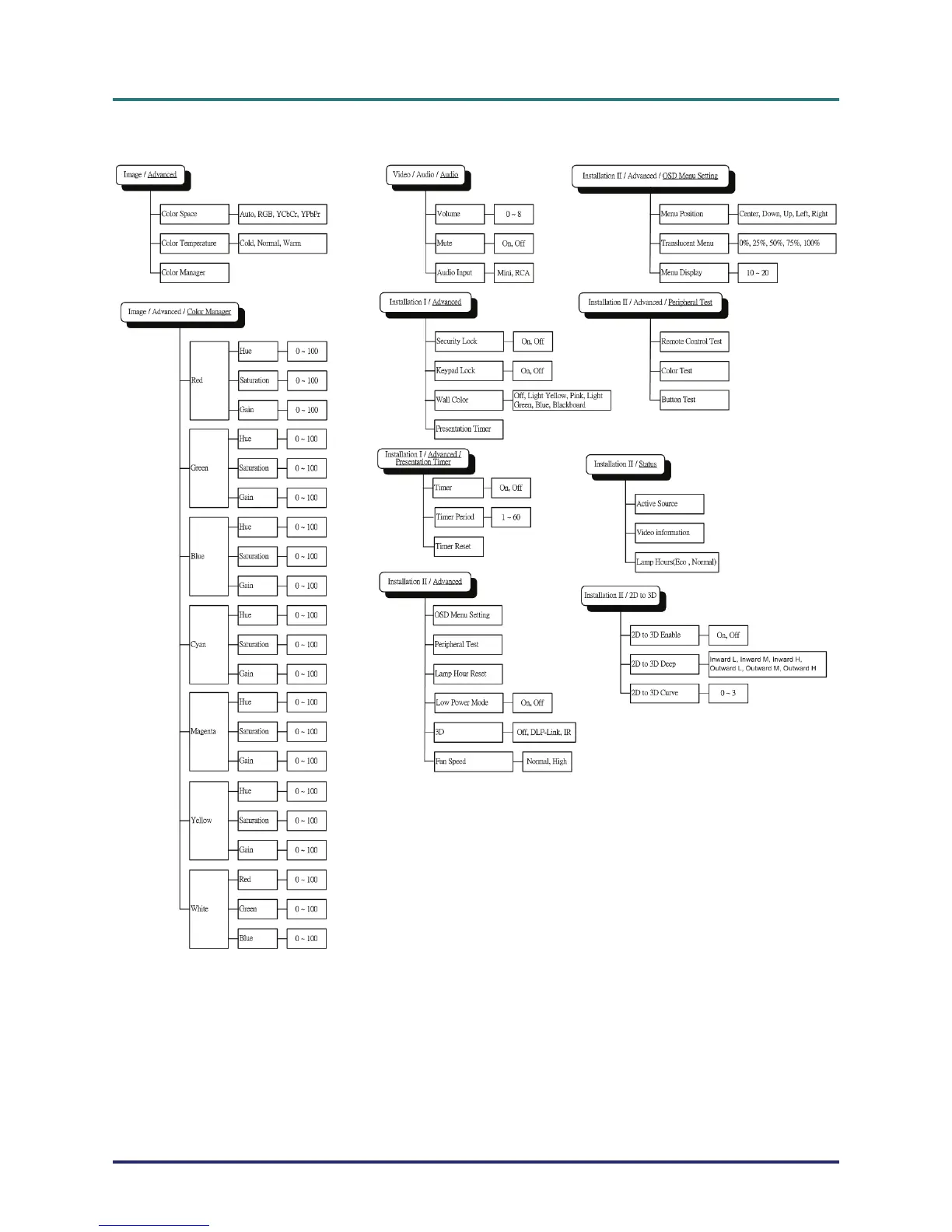 Vivitek D512-3D - OSD Sub-Menu Overview