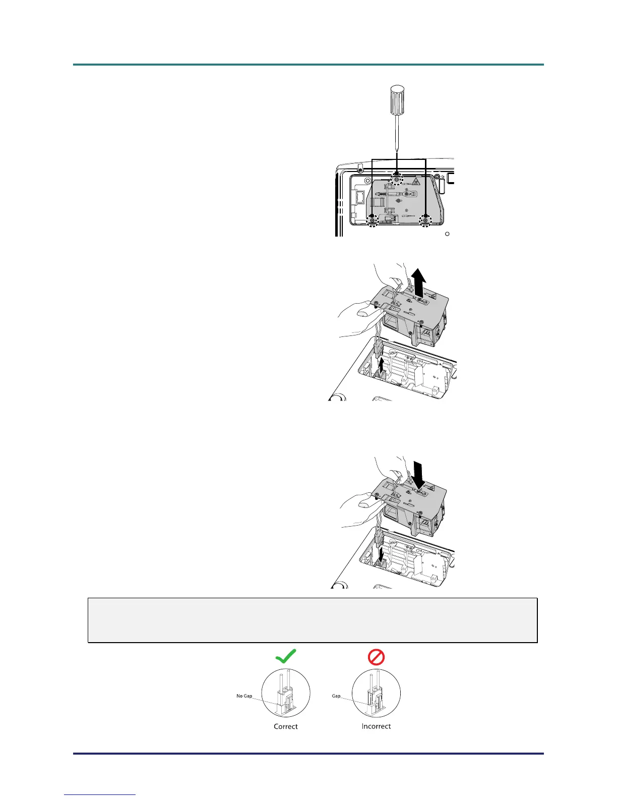 A gap between the Lamp Connector and the connector base will cause damage to the projector.