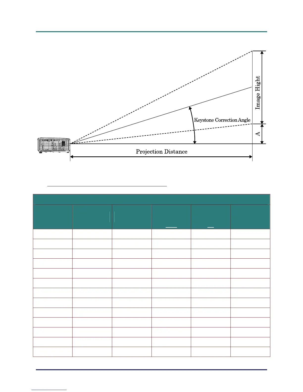 D5 Series Projection Distance and Size Table