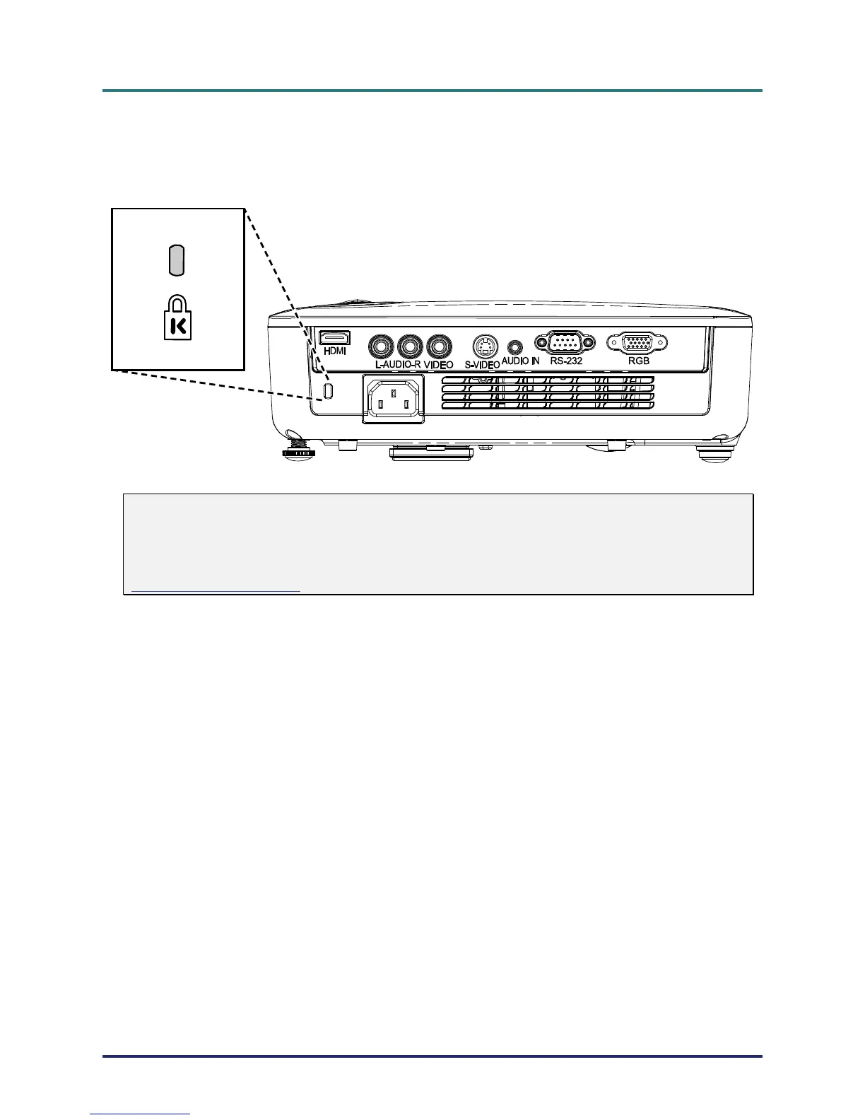 If you are concerned about security, attach the projector to a permanent object with the Kensington