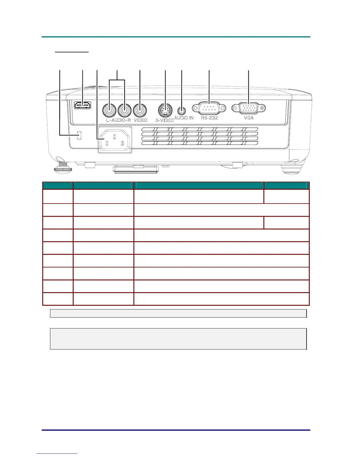 8. RS-232 Connect RS-232 serial port cable for remote control