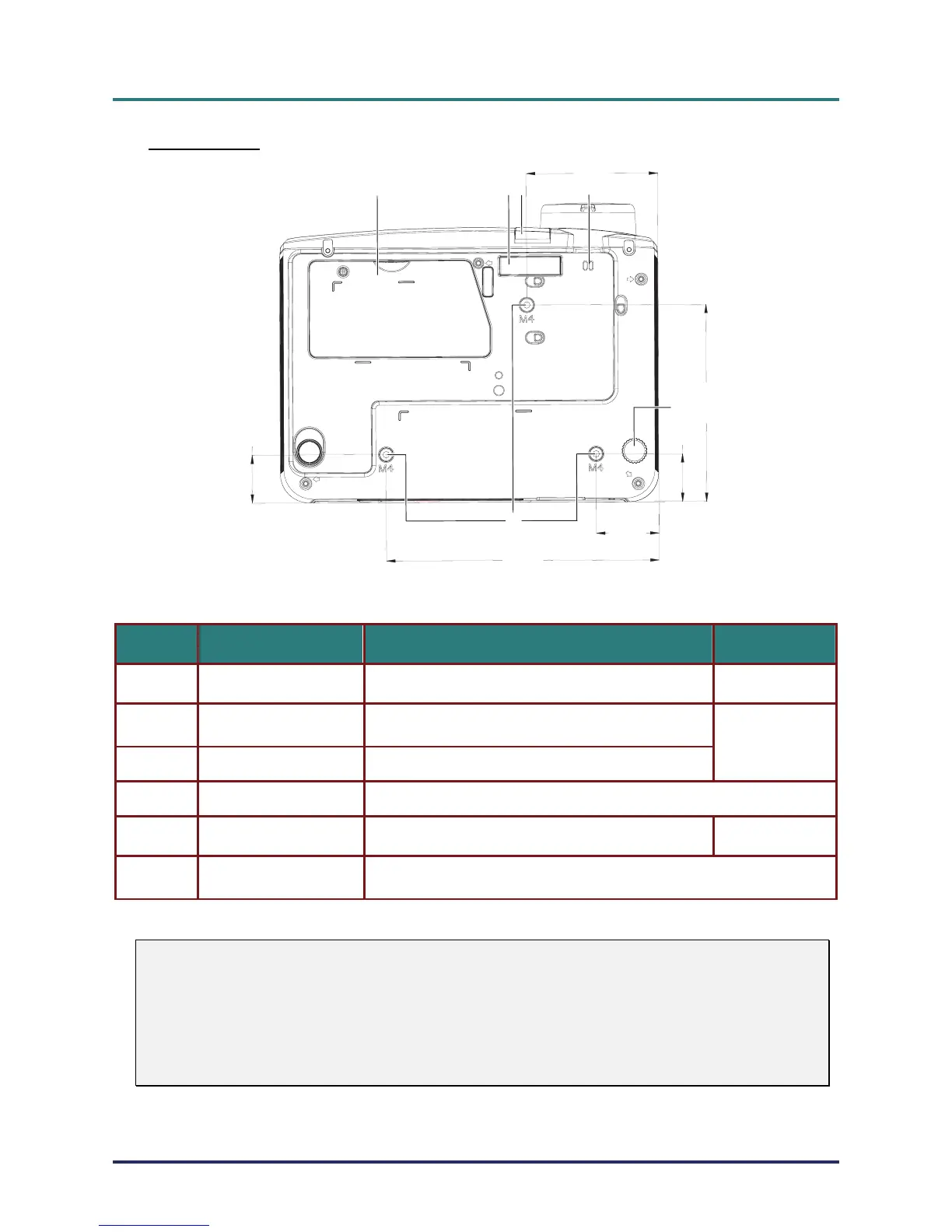 For ceiling installations, use approved mounting hardware and M4 screws with a maximum screw