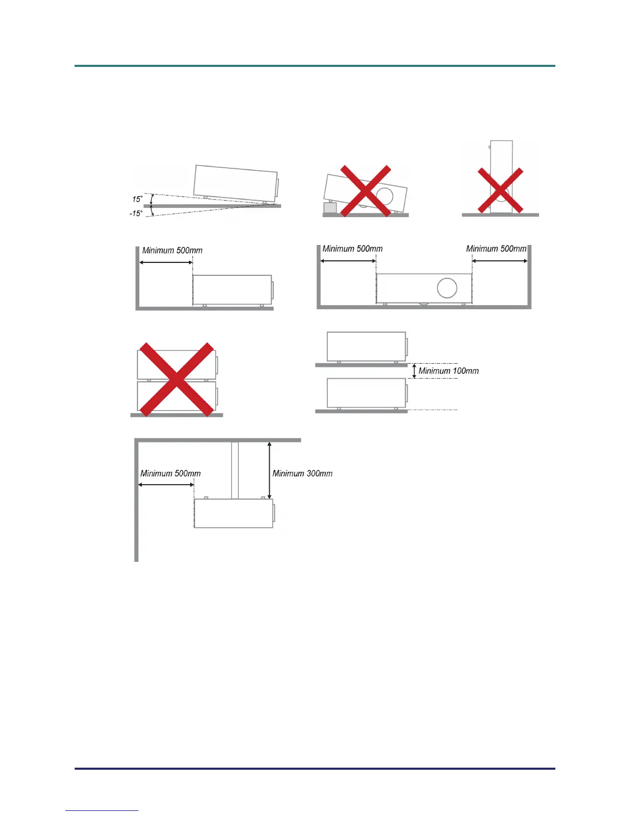 The tilt angle of the projector should not exceed 15 degrees, nor should the projector be installed in