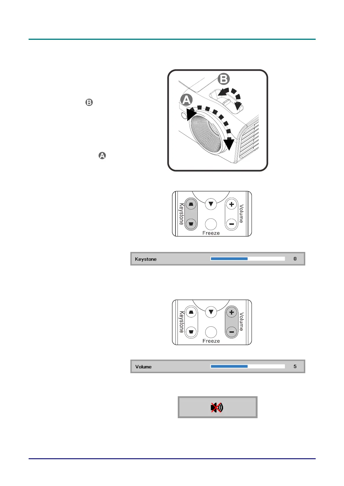 Adjusting the Zoom, Focus and Keystone